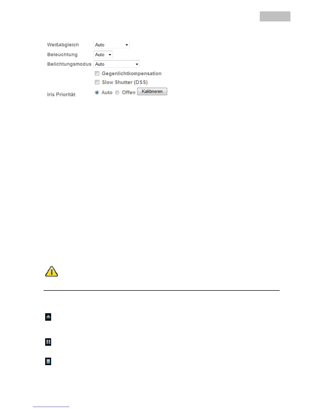 Kalibriereren: Starten Sie manuell den Kalibiervorgang für die Blendensteuerung.