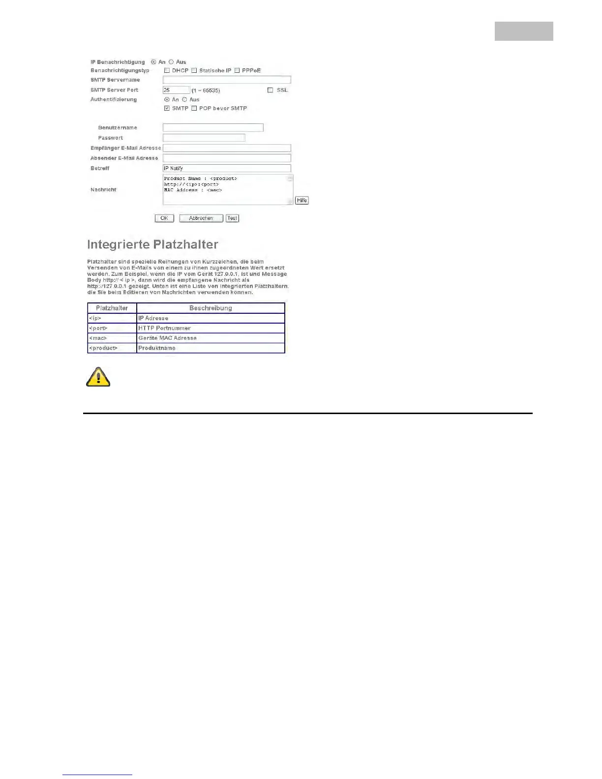 IP-Adresse: Hier wird die eingestellte IP-Adresse angezeigt. Die Vergabe der Adresse