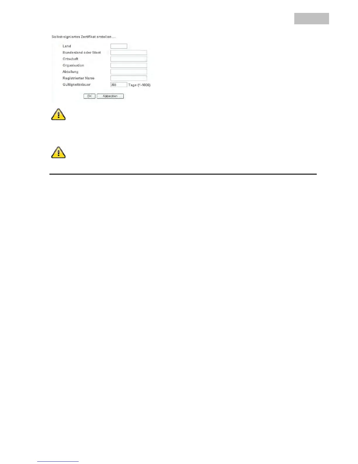 Anmerkung: Verwenden Sie ein „selbstsigniertes Zertifikat“, werden Sie ggf. einen