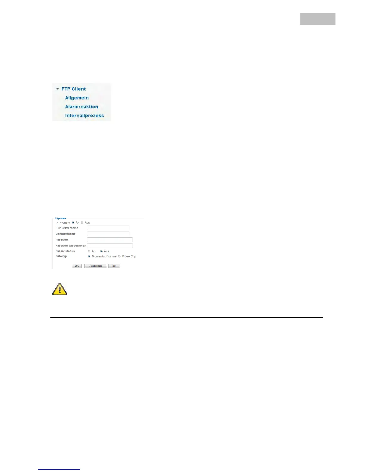 Alarm: Im Alarmfall können hier bestimmte Ereignisreaktionen für die FTP-