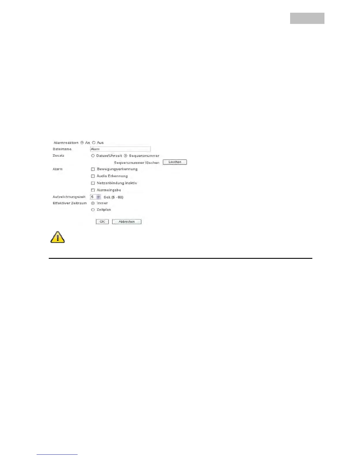 Alarm: Wählen Sie hier ein auslösendes Ereignis für die Speicherung auf ein