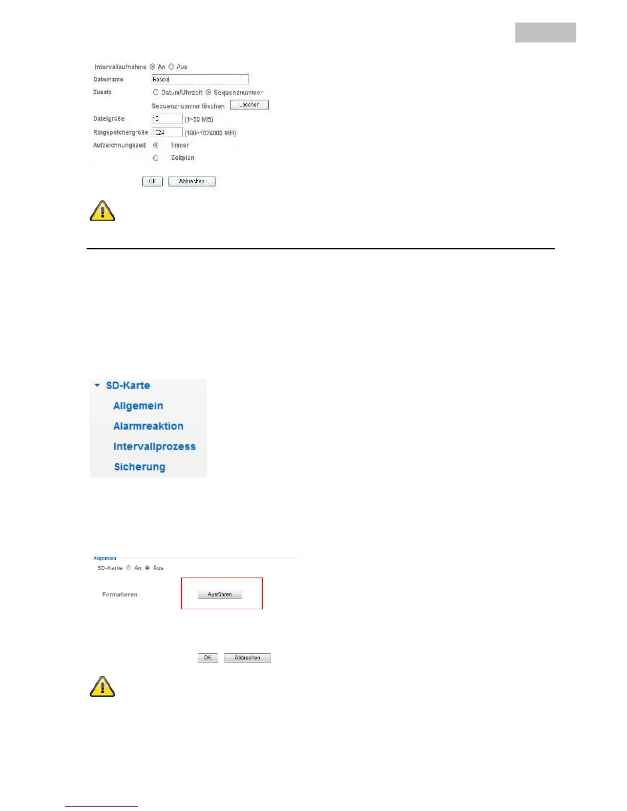 Dieser Abschnitt erklärt, wie der lokale Speicher (SD-Karte) der Netzwerkkamera verwaltet werden kann. Es