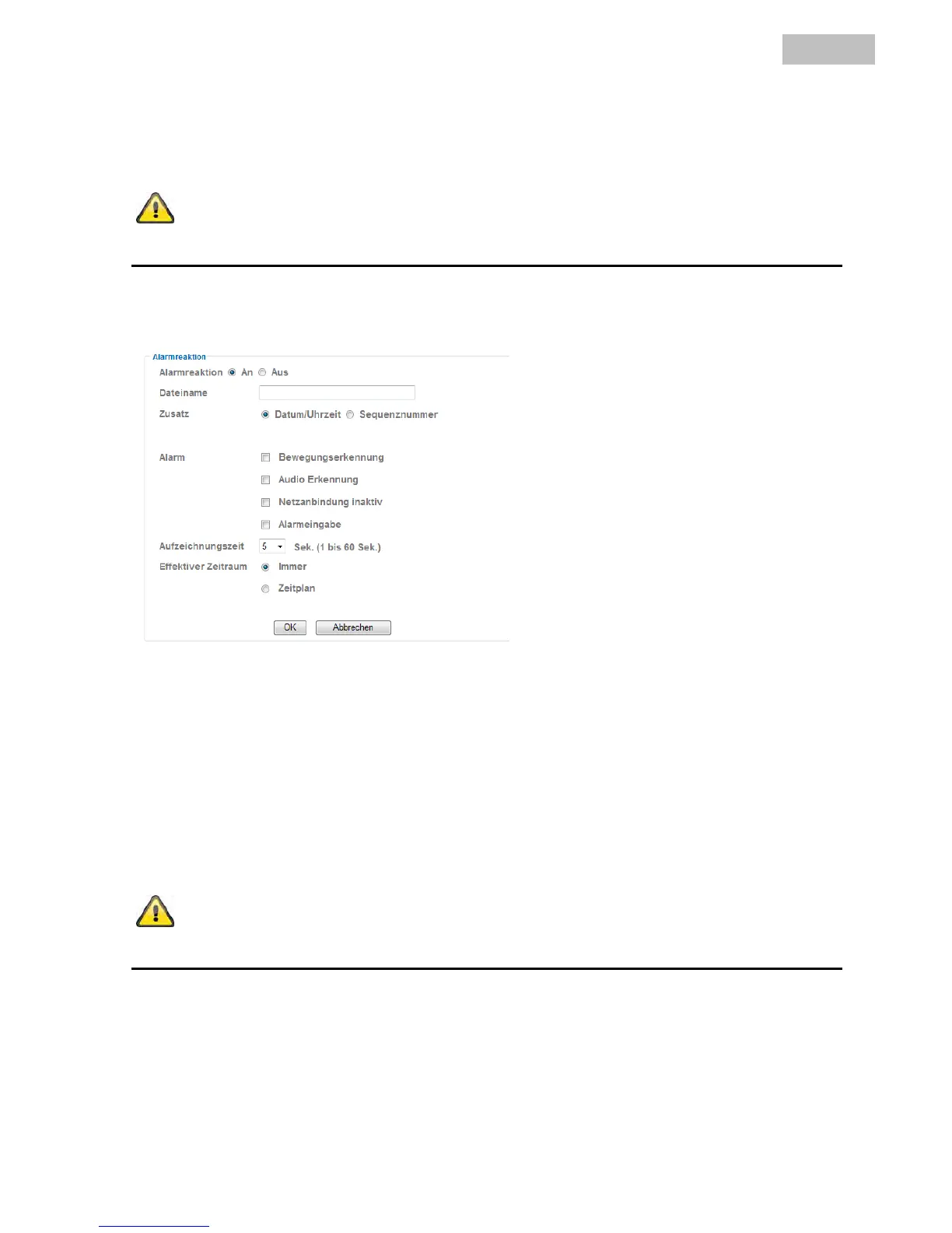 Alarmreaktion: Wenn sie nur bei einem Alarm auf die Speicherkarte aufzeichnen wollen,