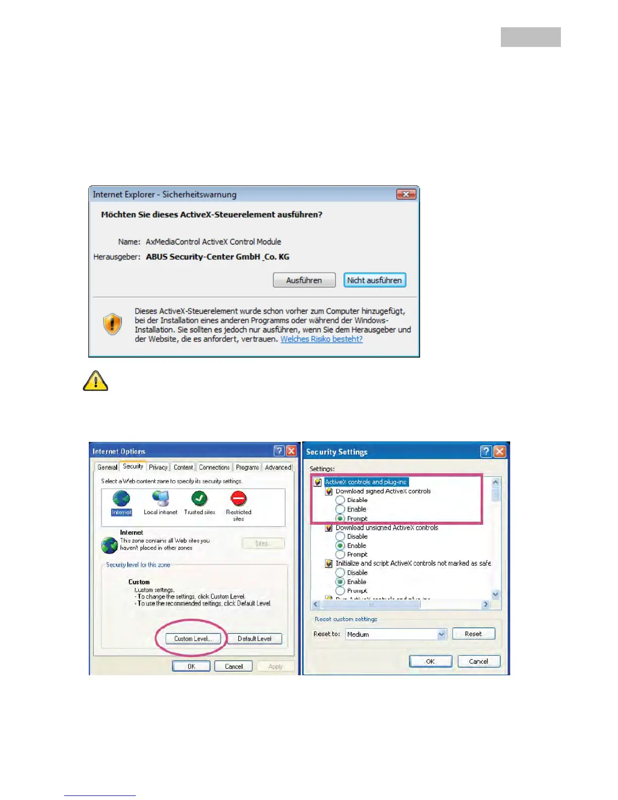 installation, open the Internet security settings and reduce the security level or consult your IT or network