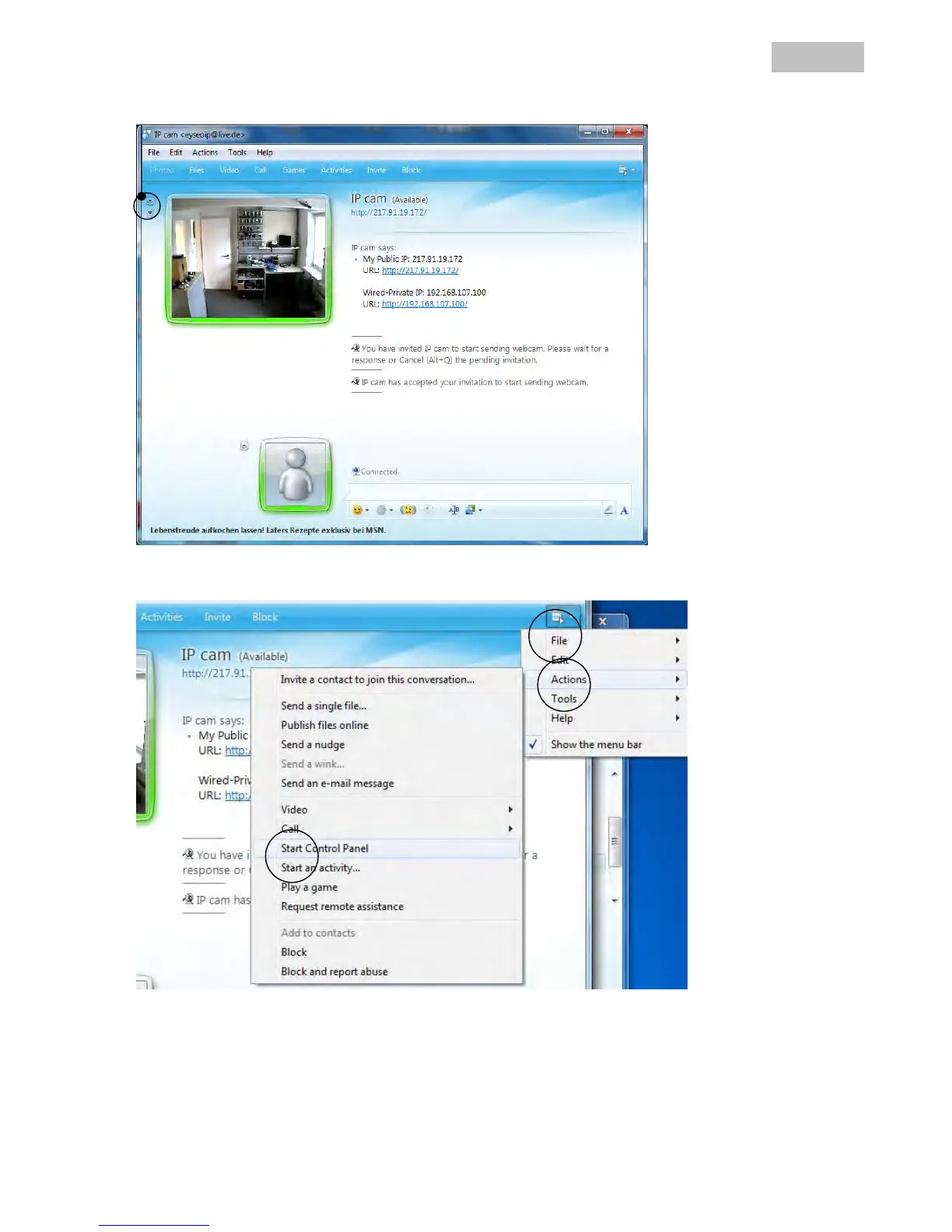 Click on the “Actions” menu to start the control panel. You can make the following settings here: