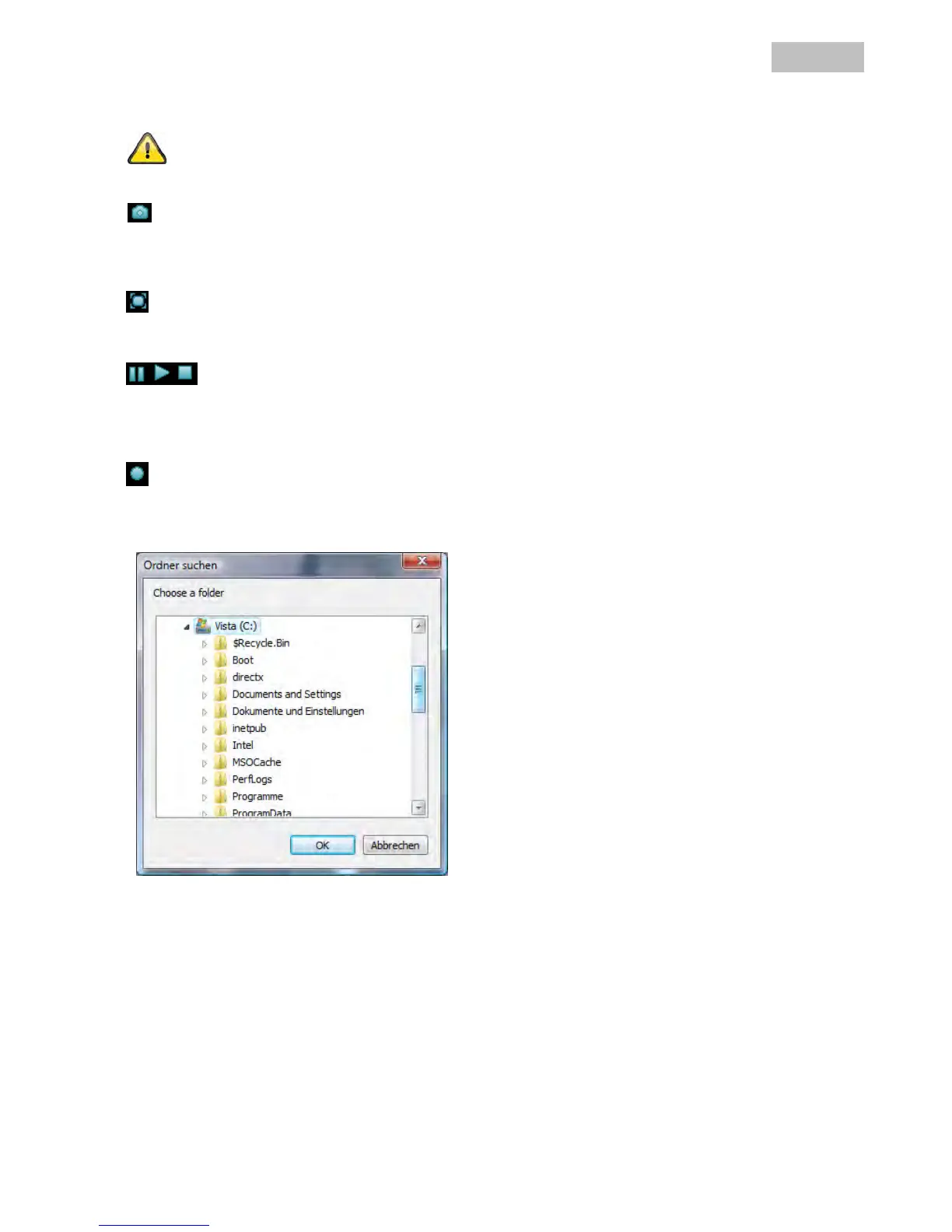 A recording on the local hard disk can be started or stopped here. By clicking the button, the Windows “Save