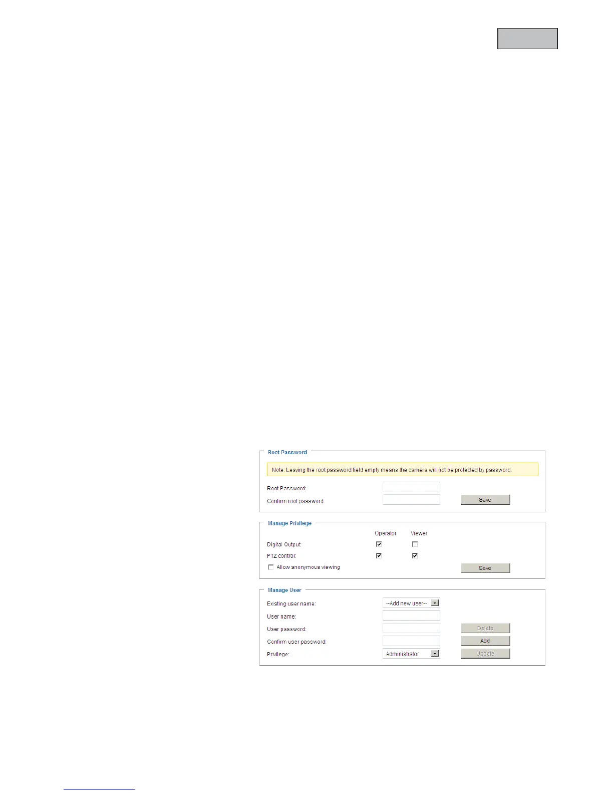“Root Password” Allows users to change the administrator password by entering a new password. For