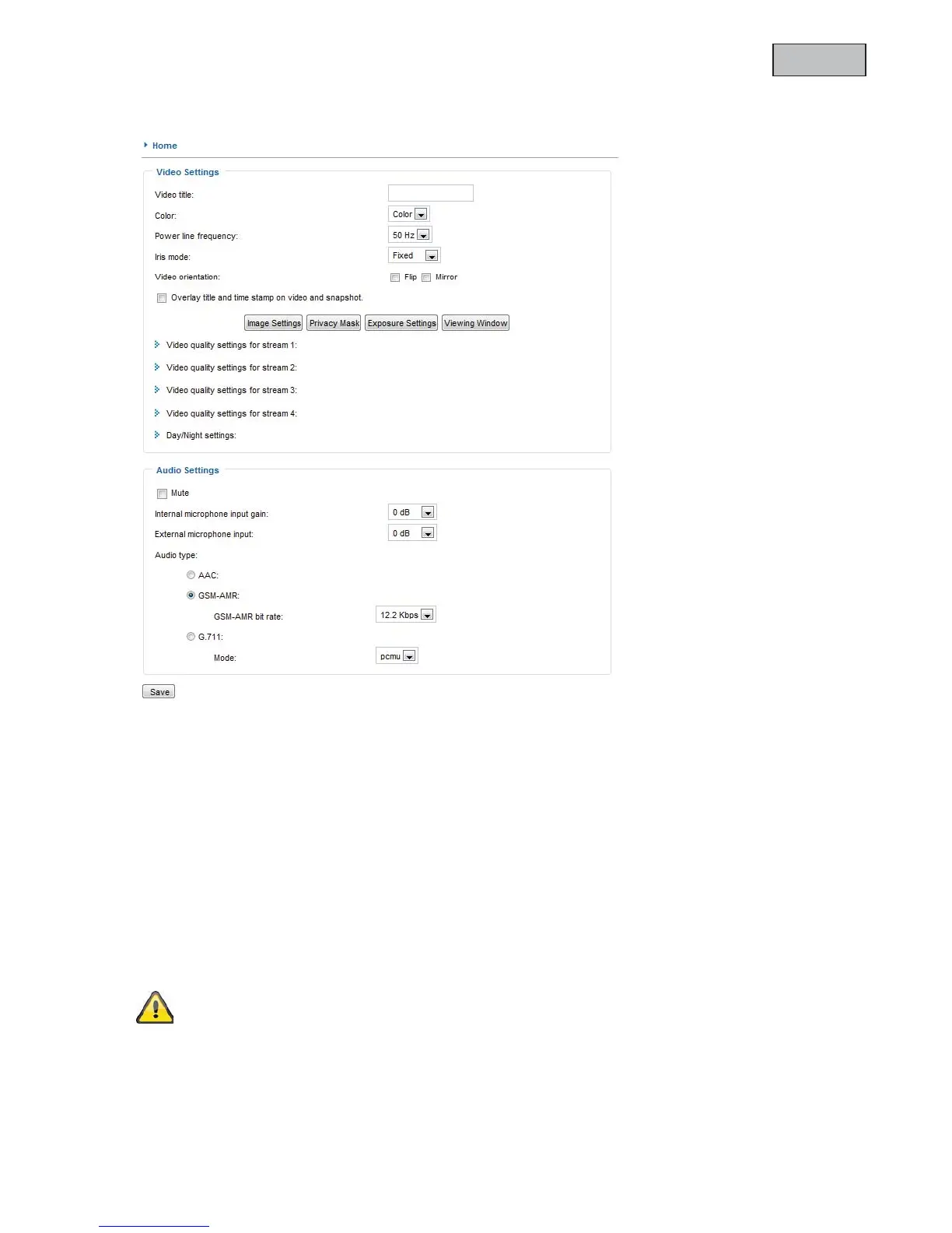 “Select caching stream” The selected video stream is used for recording the pre- and post-alarm video data