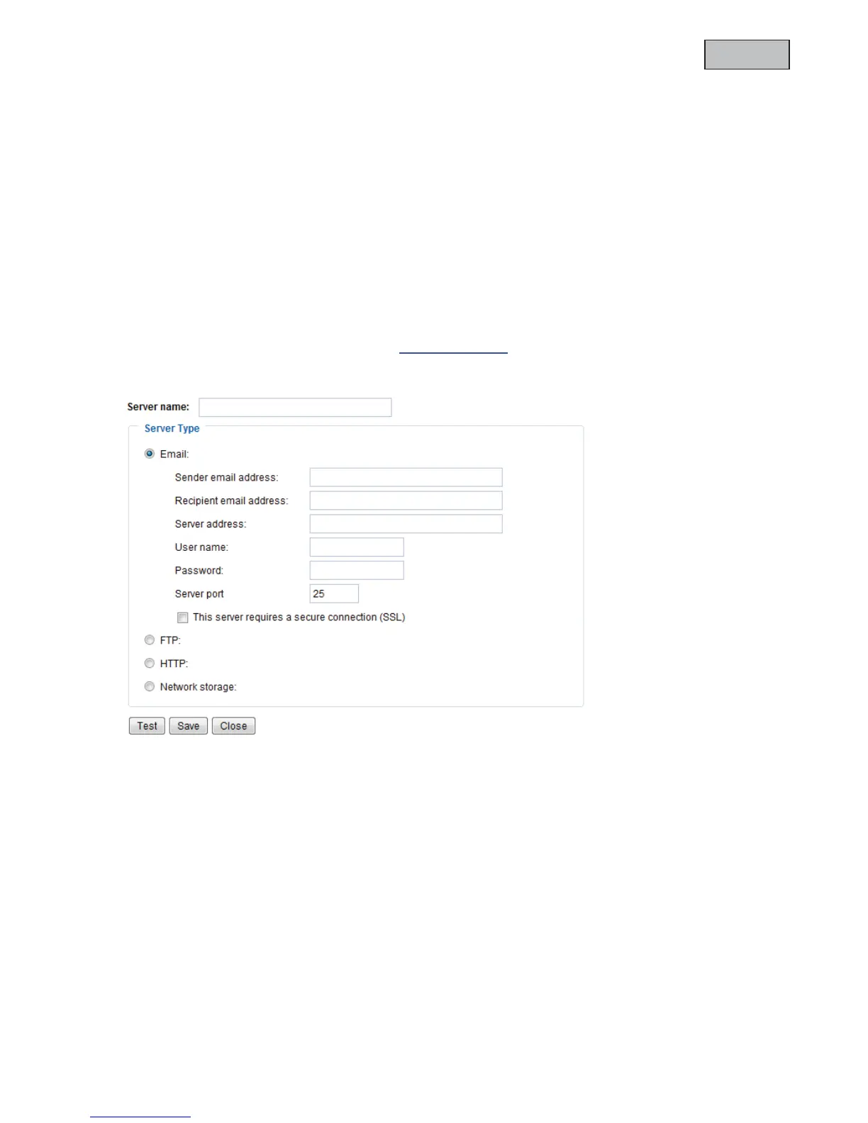 You can save up to 5 servers in the network camera. Click “Add” to configure a new server. The server of