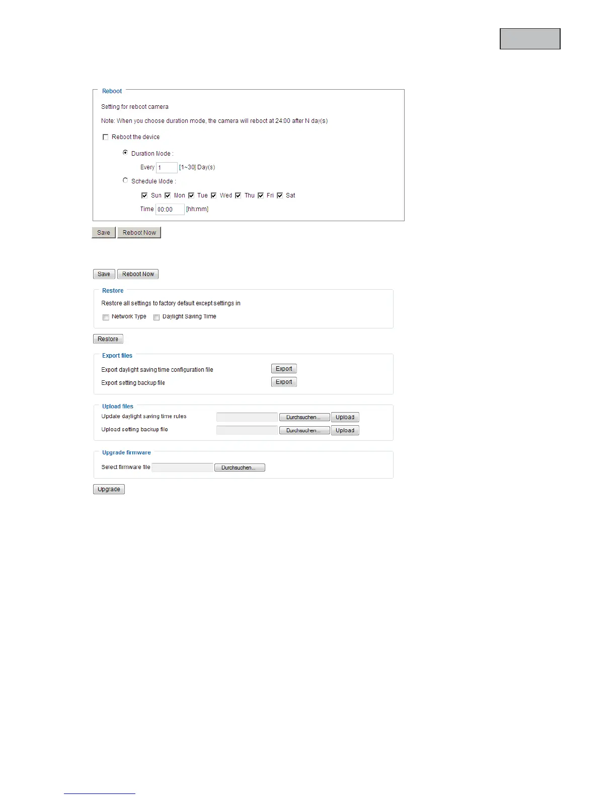 reboot. This may be helpful if network problems occur. We recommend rebooting the network camera on a
