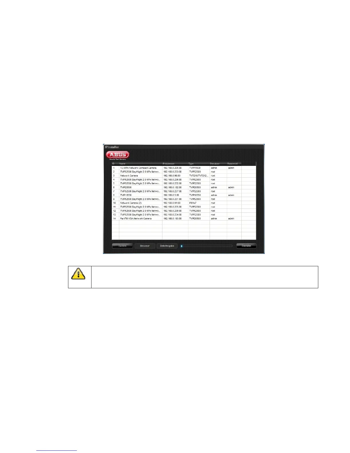 After the installation wizard is started, it searches for all connected ABUS network cameras and