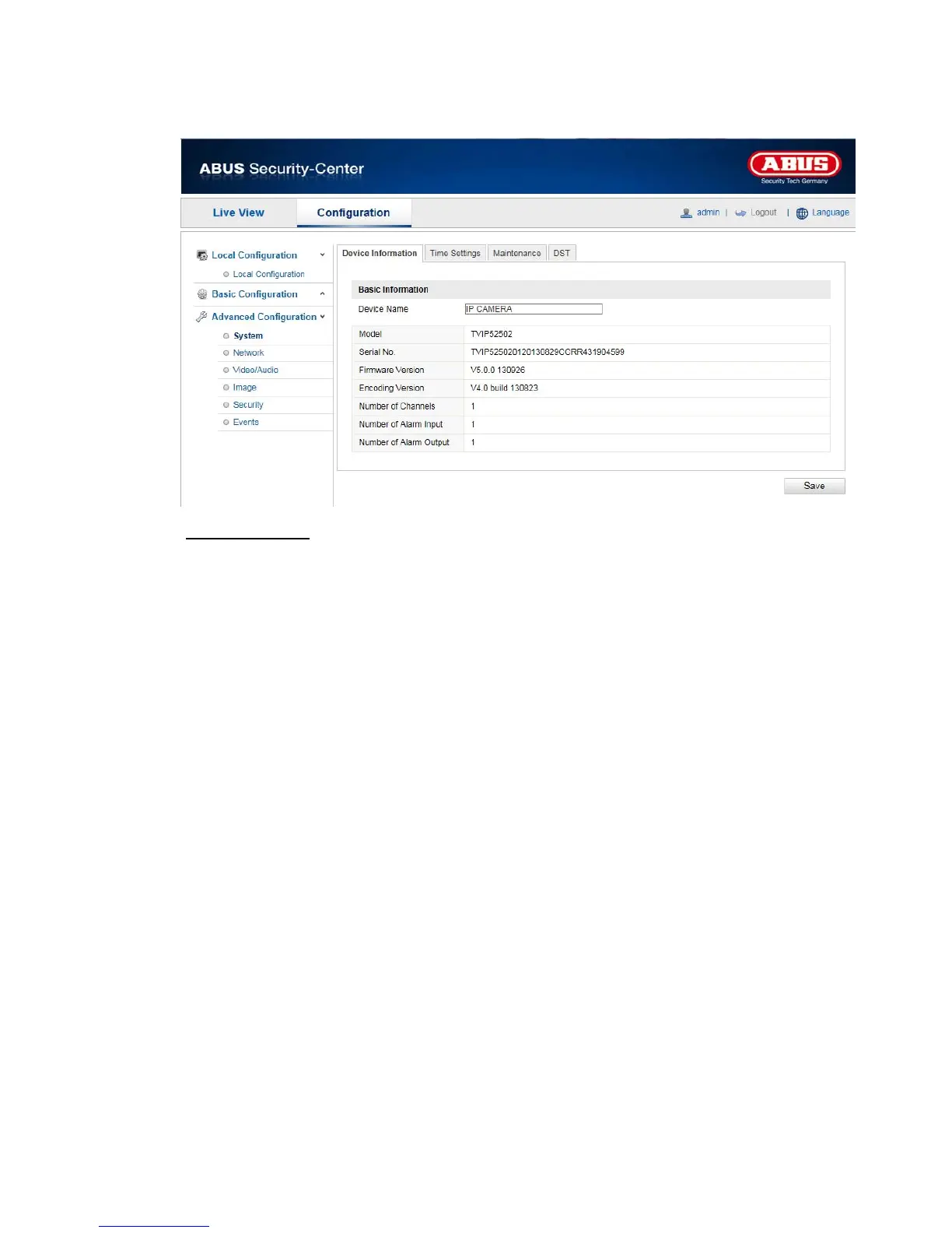 You can specify a device name for the Speed Dome here. Click on “Save” to apply the change.