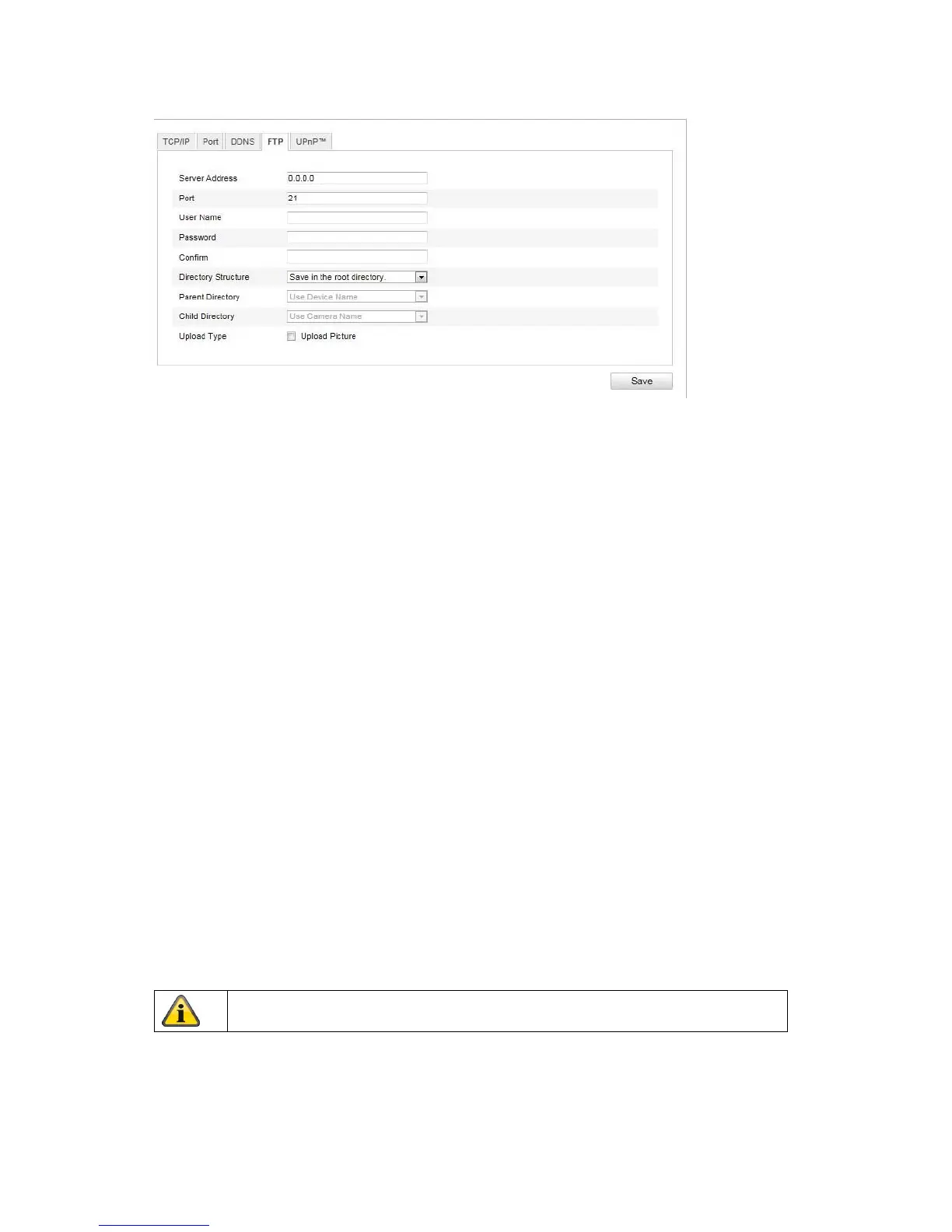 To upload recorded videos or images onto an FTP server, the following settings must be made.