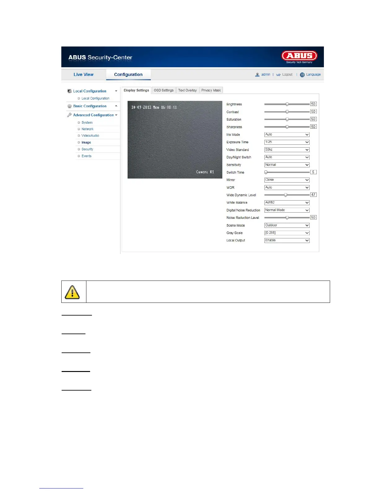 You can use this menu item to set the picture quality of the Speed Dome, including brightness, sharpness,