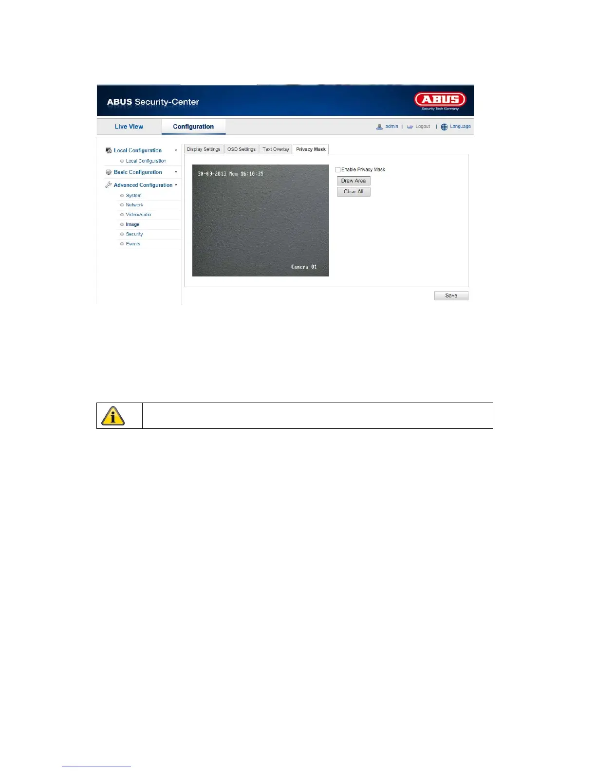 mask, click “Draw Area”. You can now mark an area on the camera image using your mouse. You can