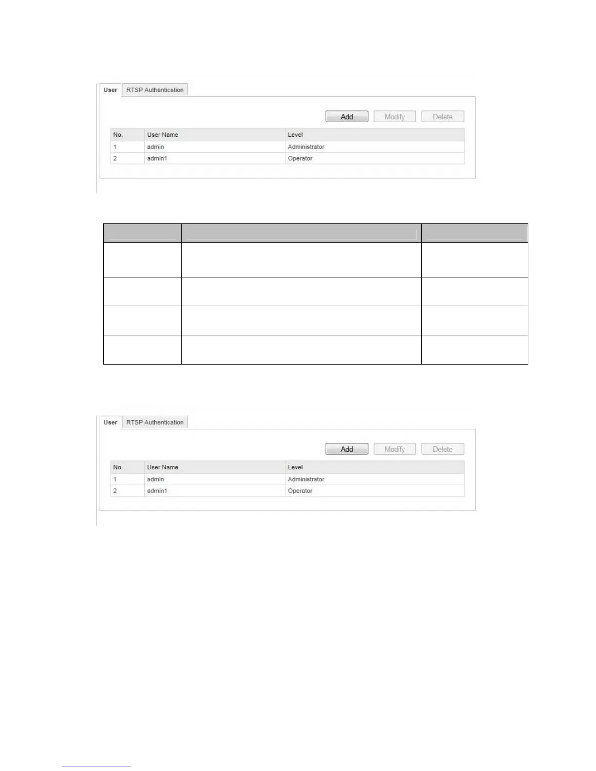 To add a user or to edit one, click “Add” or “Modify”.