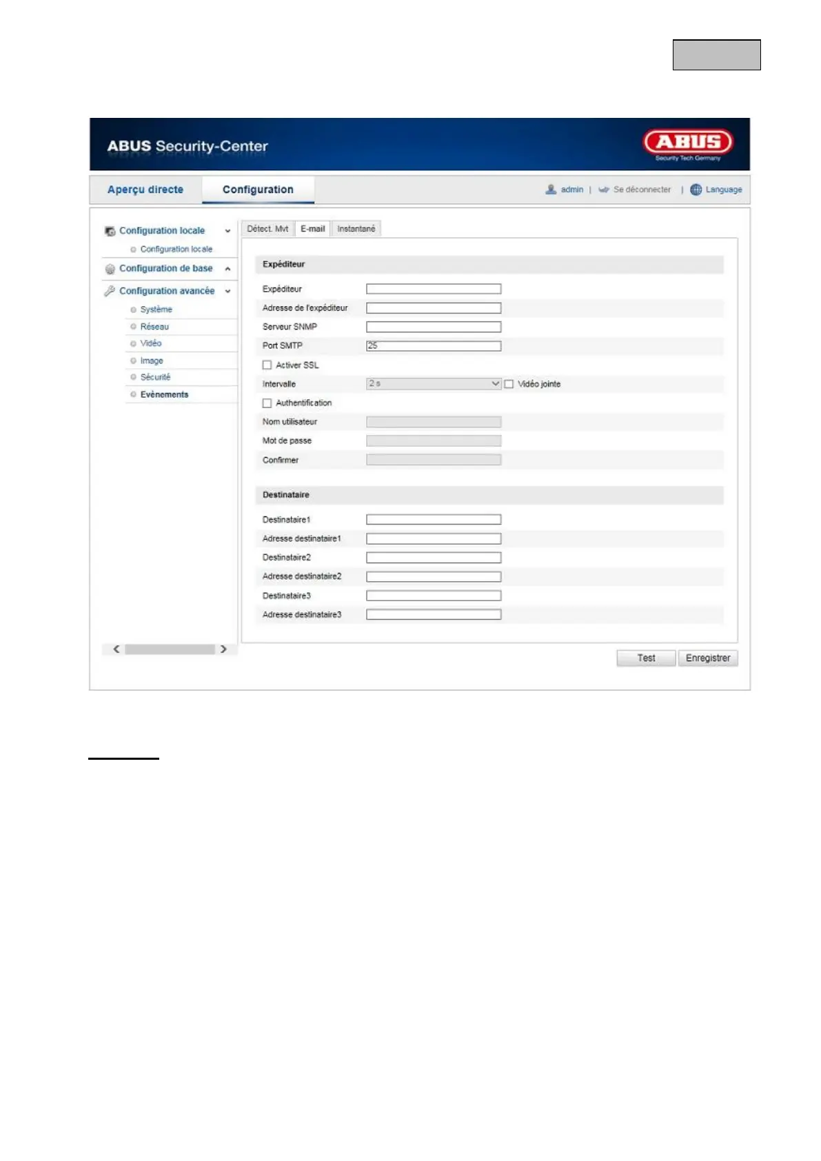 Indiquez ici le port SMTP, celui-ci est configuré sur 25 par défaut.
