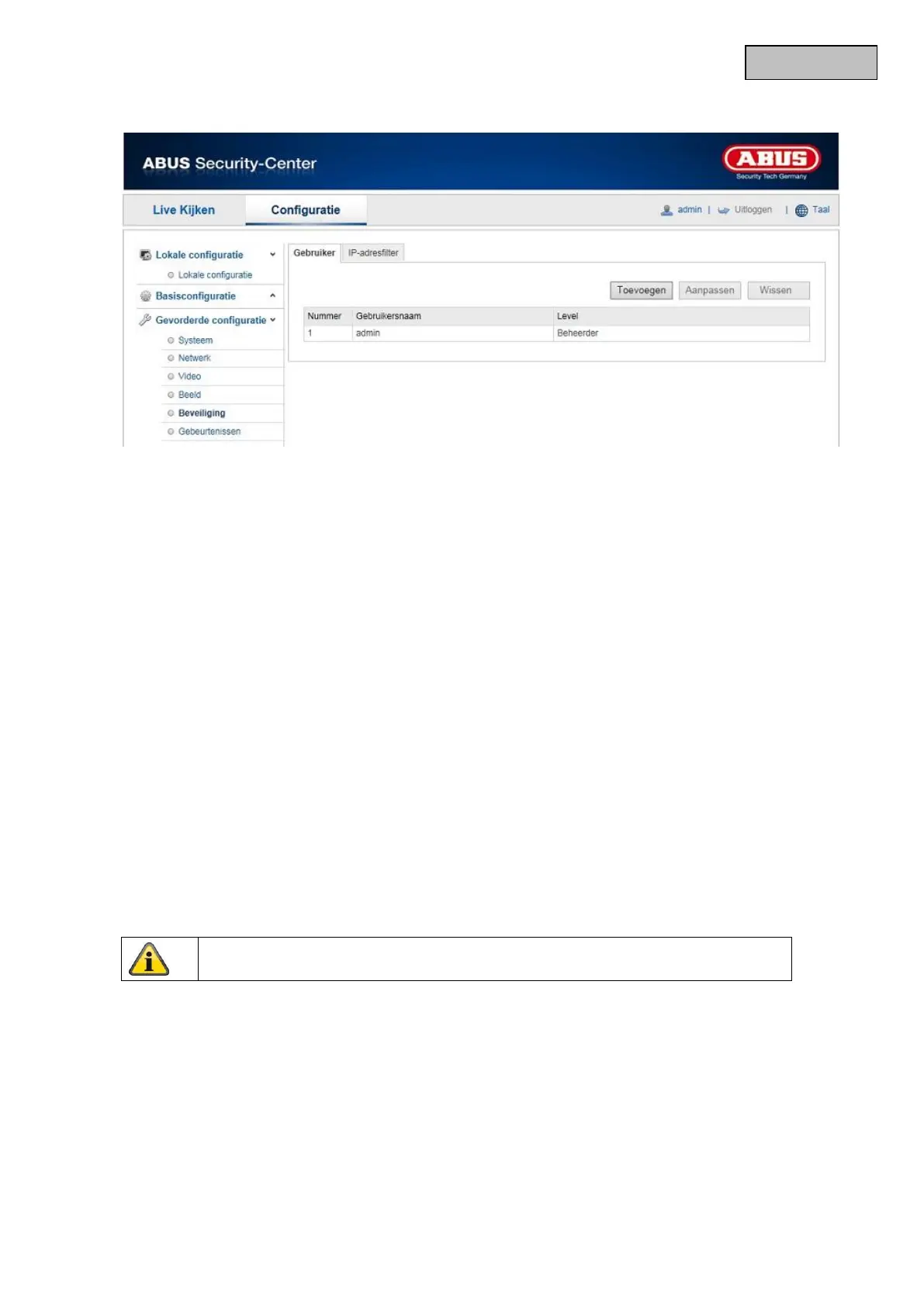 Bij dit menupunt kunt u gebruikers toevoegen, bewerken of wissen.