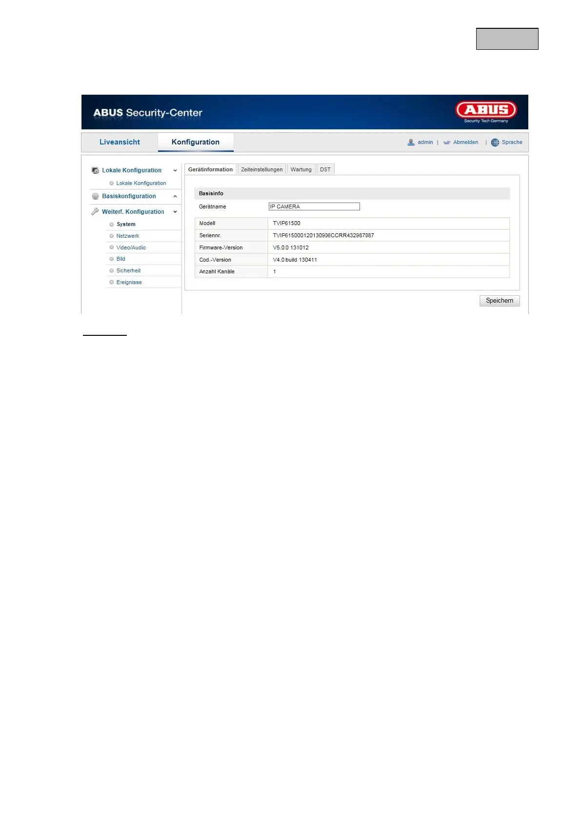 Hier können Sie einen Gerätenamen für die Kamera vergeben. Klicken Sie auf „Speichern“ um diesen