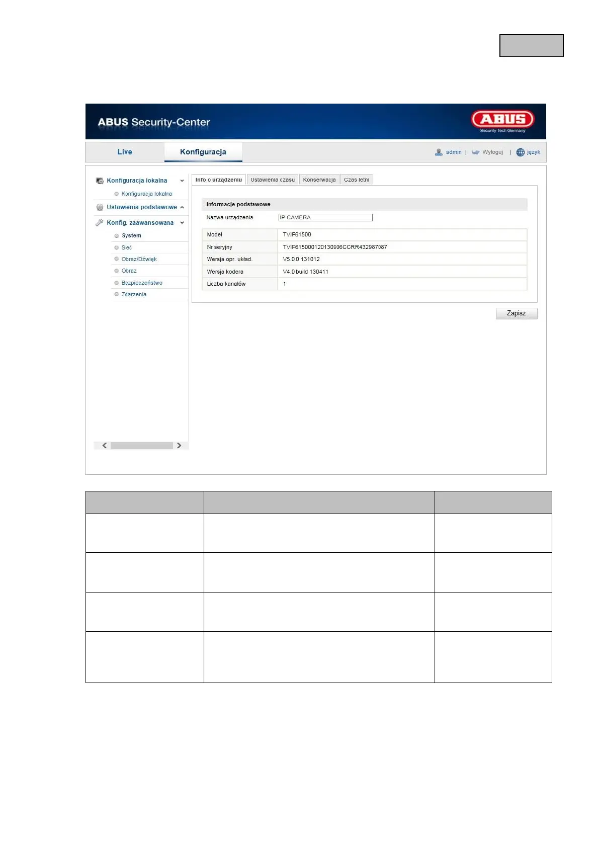 Abus TVIP61500 - Konfiguracja Zaawansowana; System