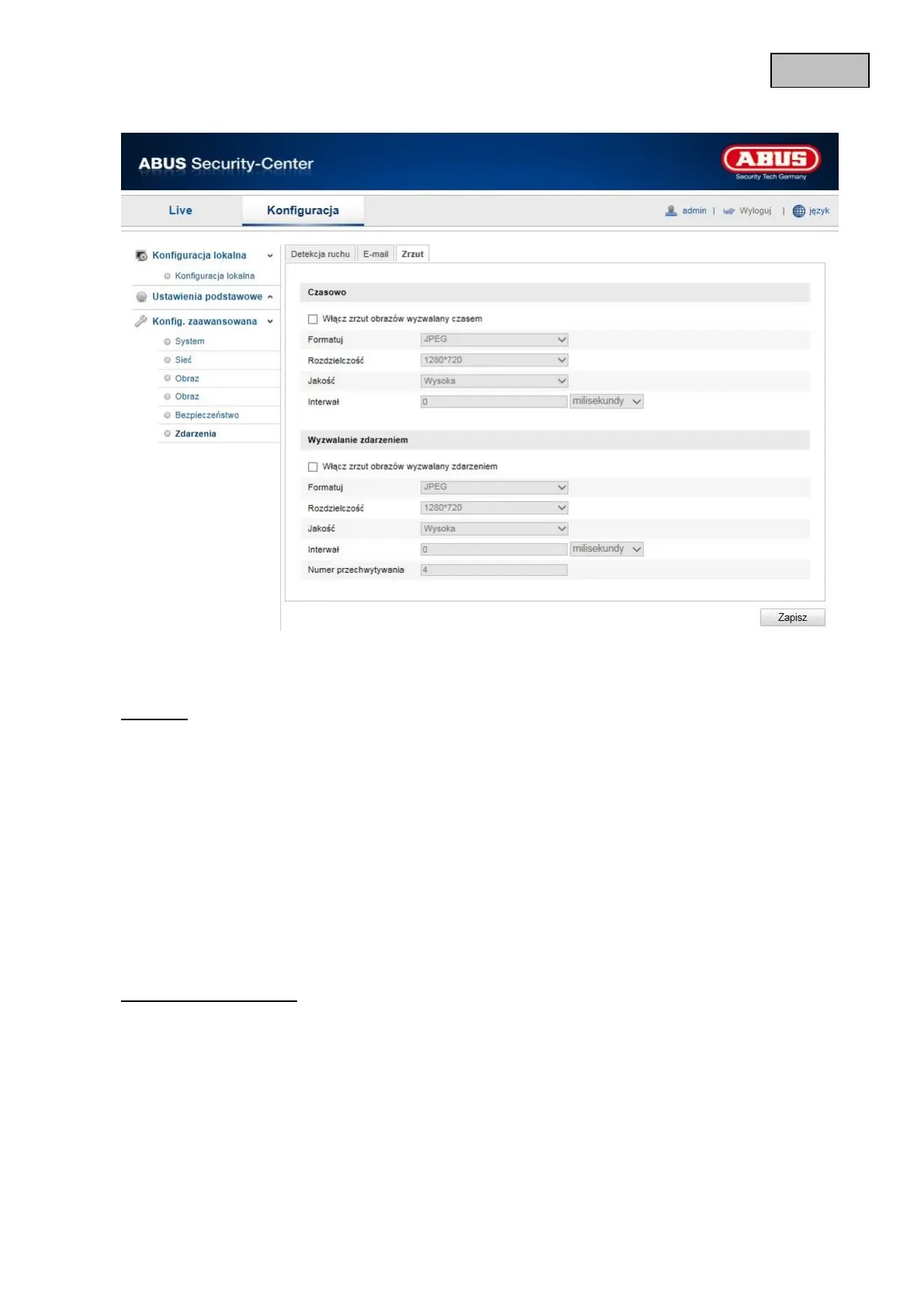 Aktywuj tę funkcję, aby zapisywać obrazy wyzwalane zdarzeniem.