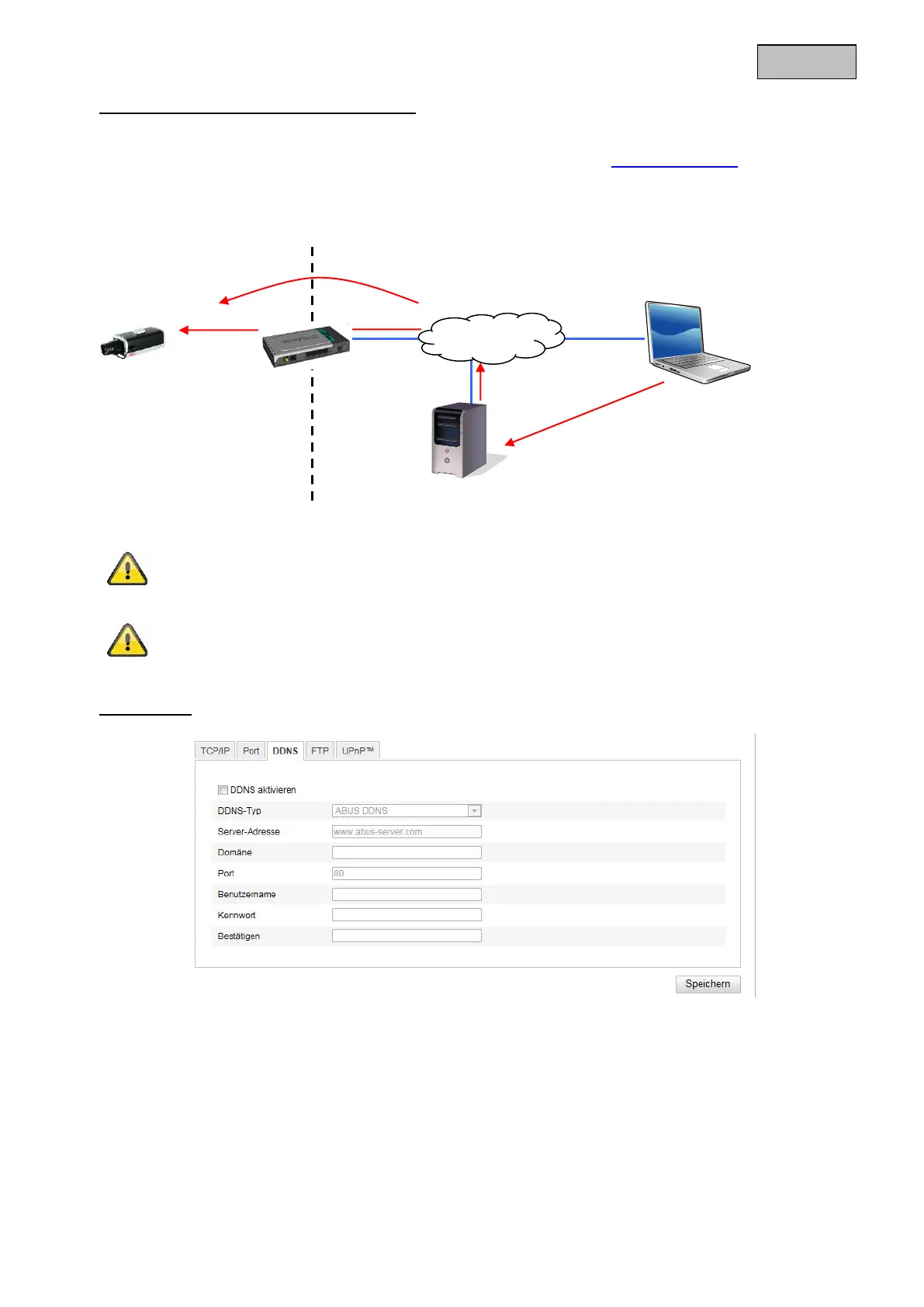 Sollte sich Ihre Netzwerkkamera hinter einem Router befinden, ist der Zugriff über DynDNS im Router zu