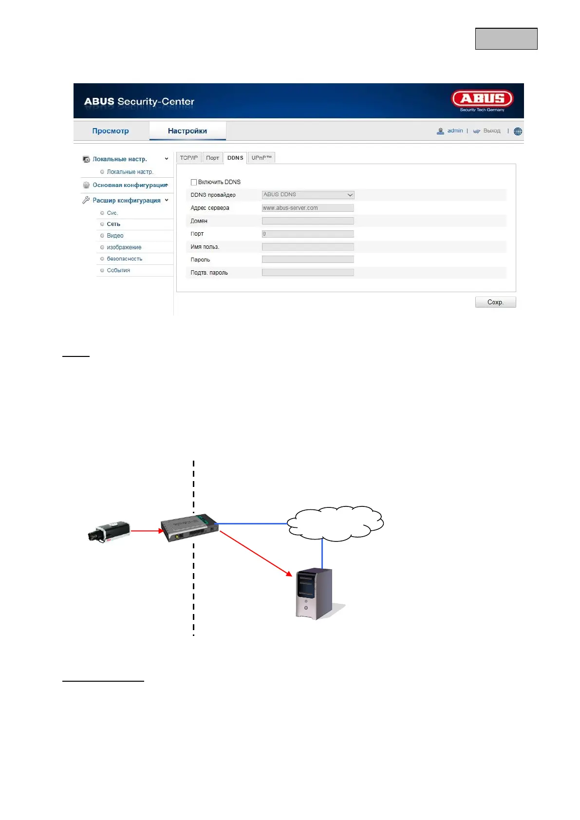 Выберите тип DDNS. Вы можете выбрать «DynDNS» или «ABUS DDNS».