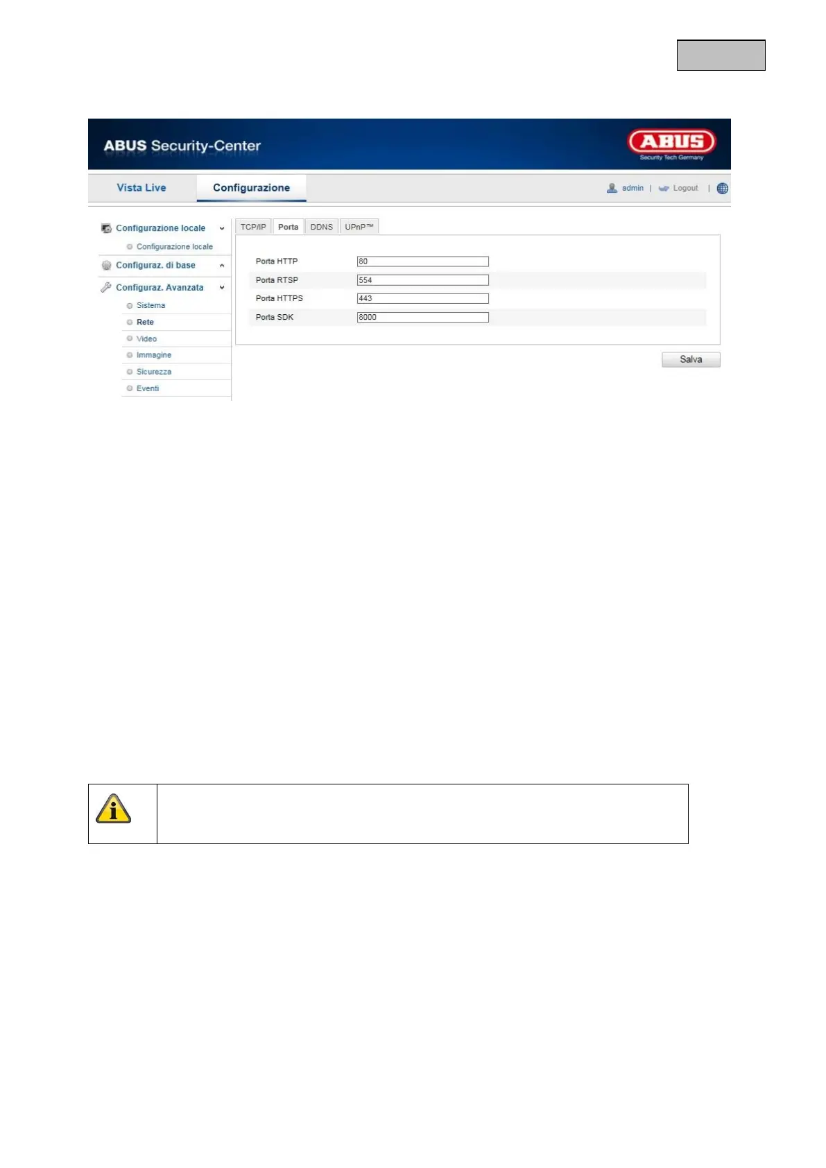 interni. Altrimenti questa porta può corrispondere a un valore compreso nell’intervallo 1025~65535. Se nella