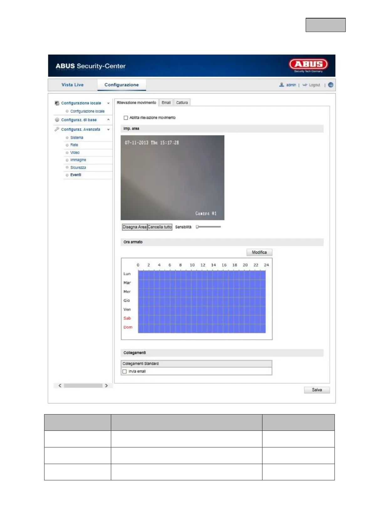 Impostazione del rilevamento del movimento