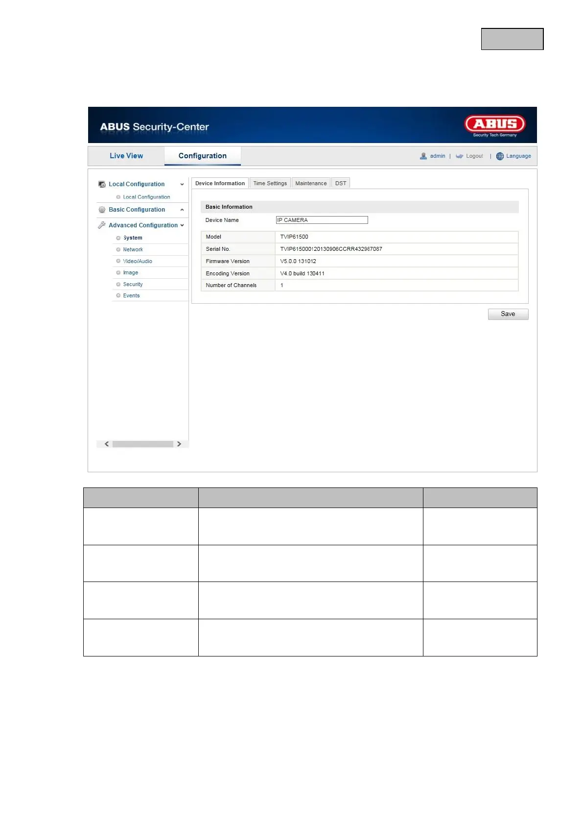 Abus TVIP61500 - Advanced System Settings; System Configuration Options