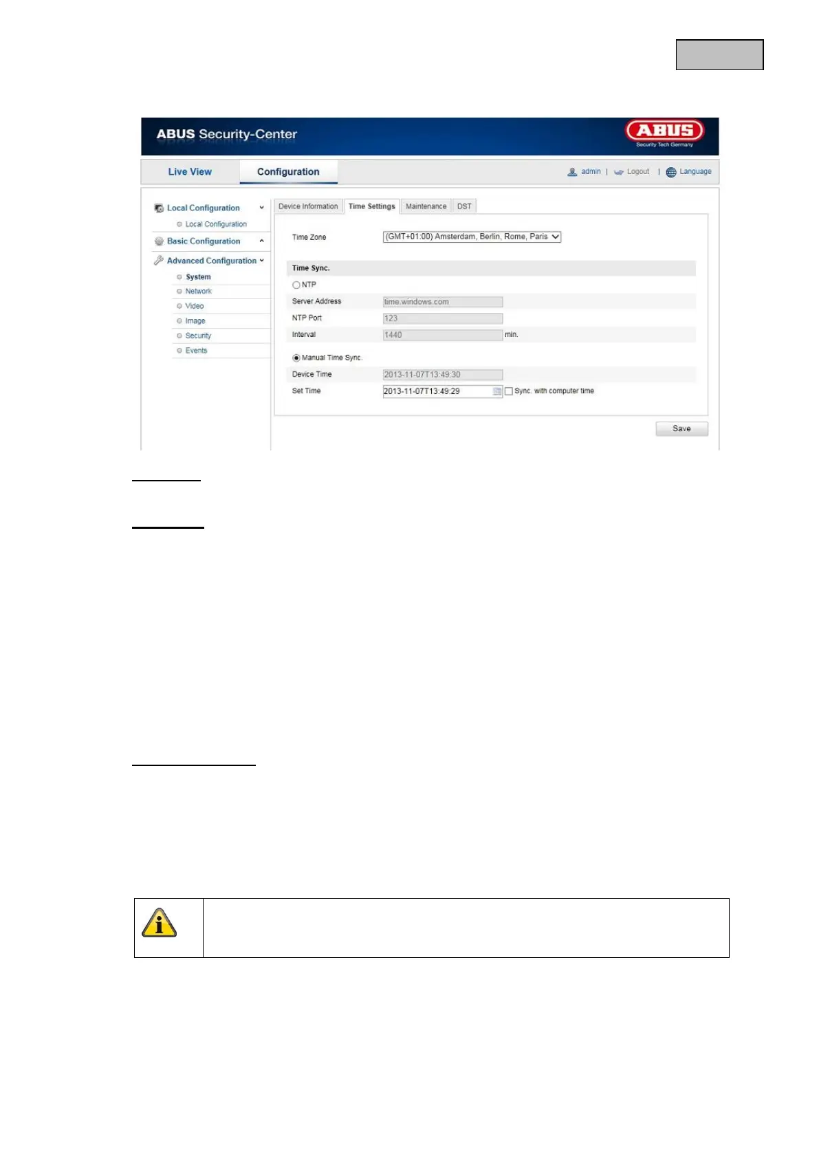 Click on “Sync. with computer time” to adopt the device time of the computer.