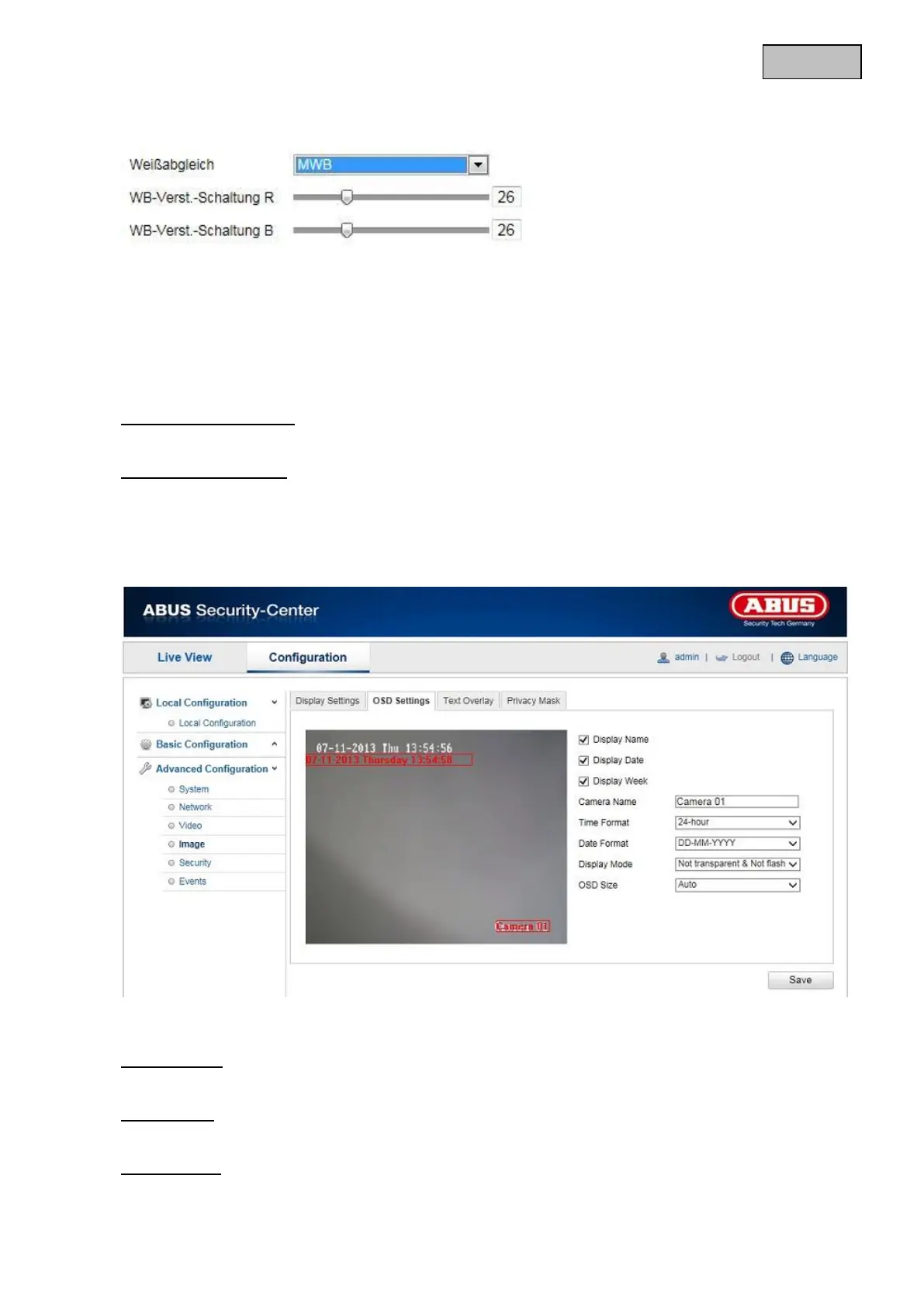 You can use this menu item to select which date and time format are displayed in the live picture.