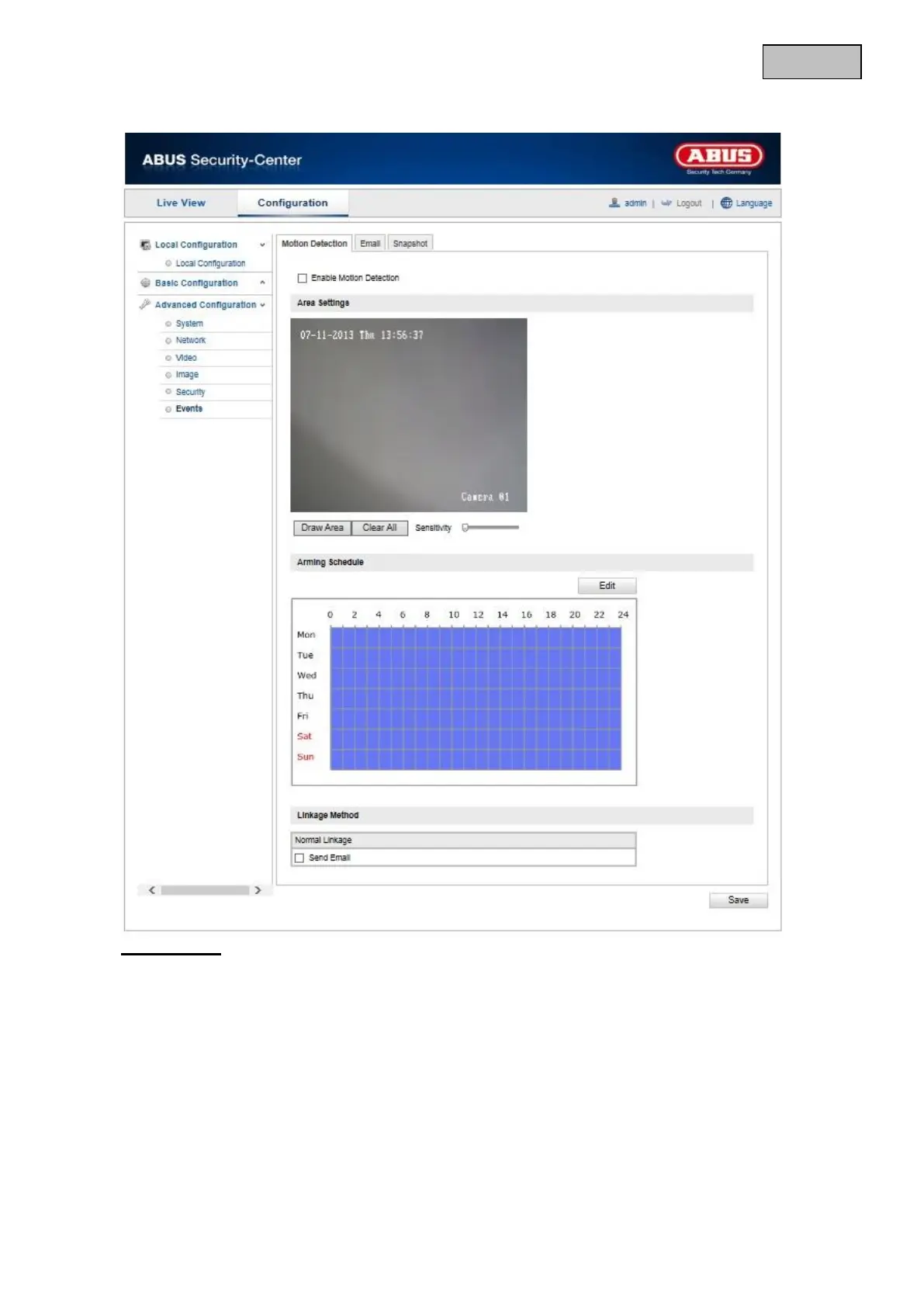 Activate motion detection by clicking the “Enable Motion Detection” checkbox.