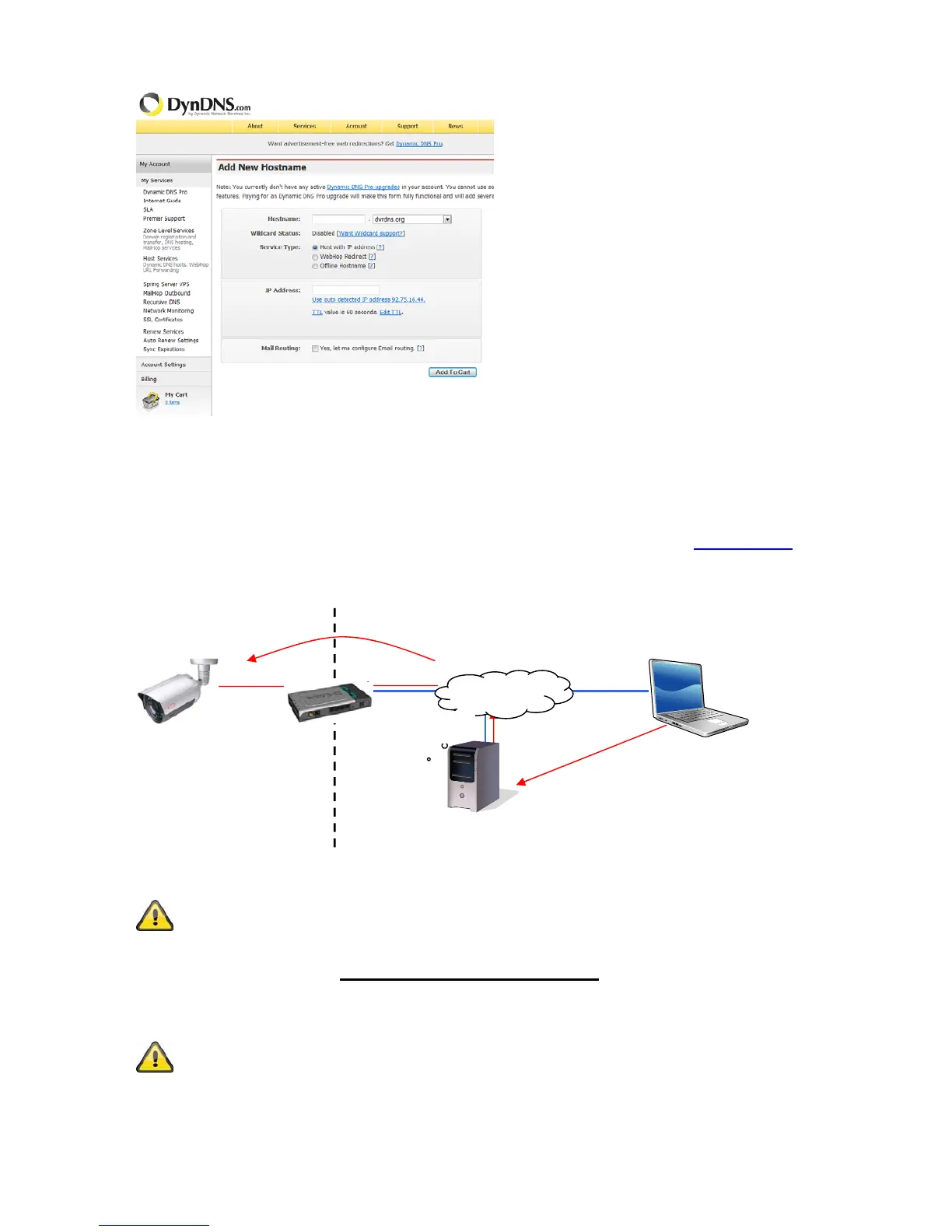 De volgende afbeelding verduidelijkt de toegang tot een netwerkcamera achter een router via DynDNS.org.