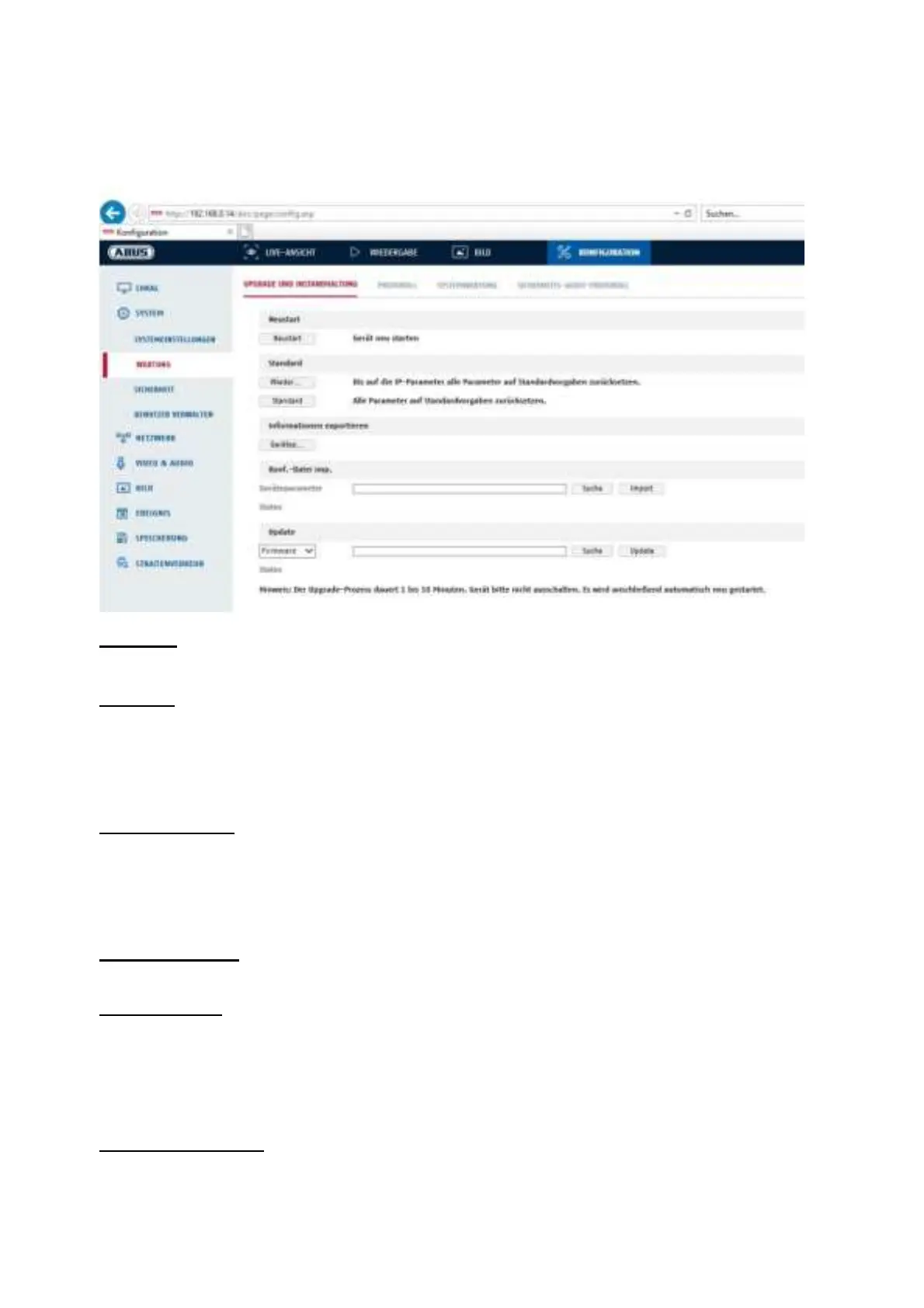 Klik op “Herstellen” om alle parameters behalve de IP-parameters op de standaardinstellingen terug te zetten.