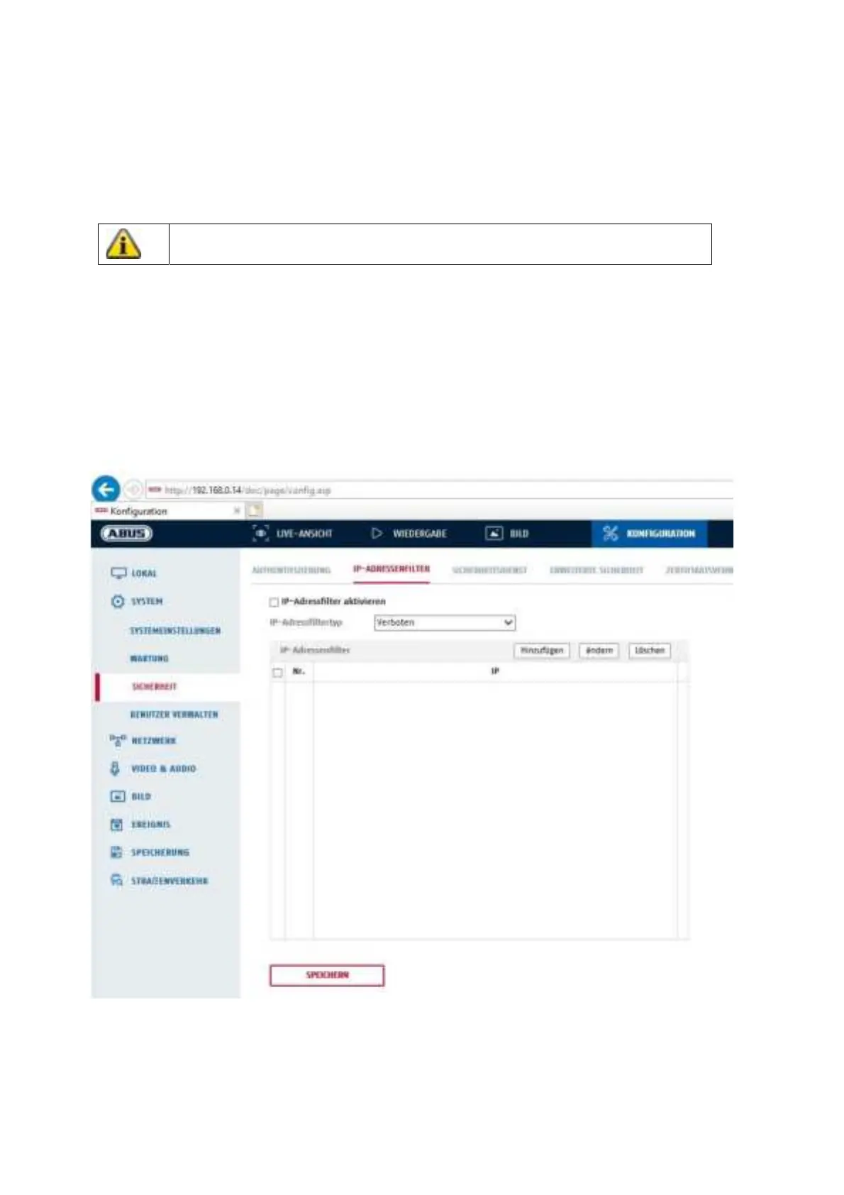 Verboden: De hieronder gedefinieerde IP-adressen worden geblokkeerd. De invoer van een IP gebeurt m.b.v.