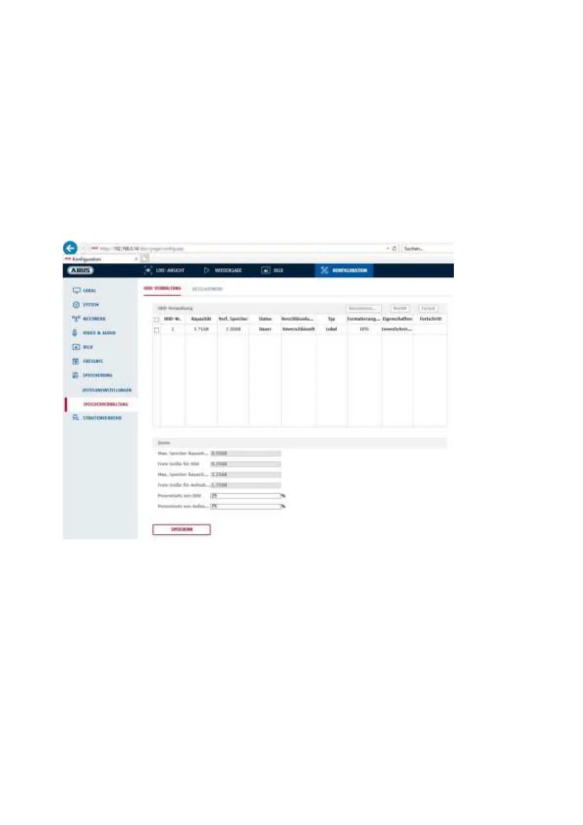på lagringsmediet krypteres. Der kan også foretages en procentvis fordeling af lagerpladsen for videodata og