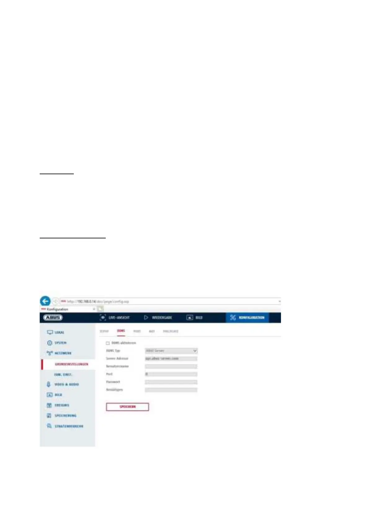 Server Address: IP address of the service provider (already filled in for the ABUS server option)