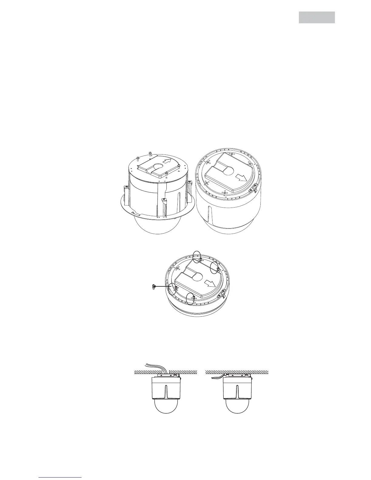 The ceiling mount is attached to the indoor dome upon delivery. Before installing the Speed Dome in