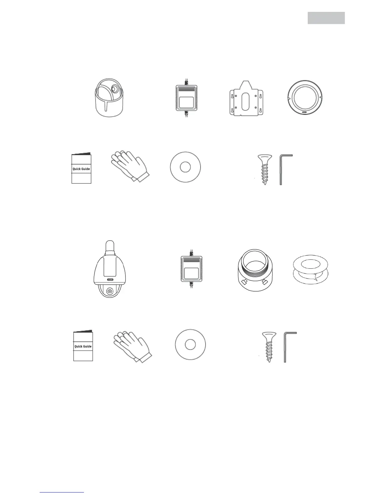 Abus TVIP81000 - Scope of delivery; Indoor domes; Outdoor domes