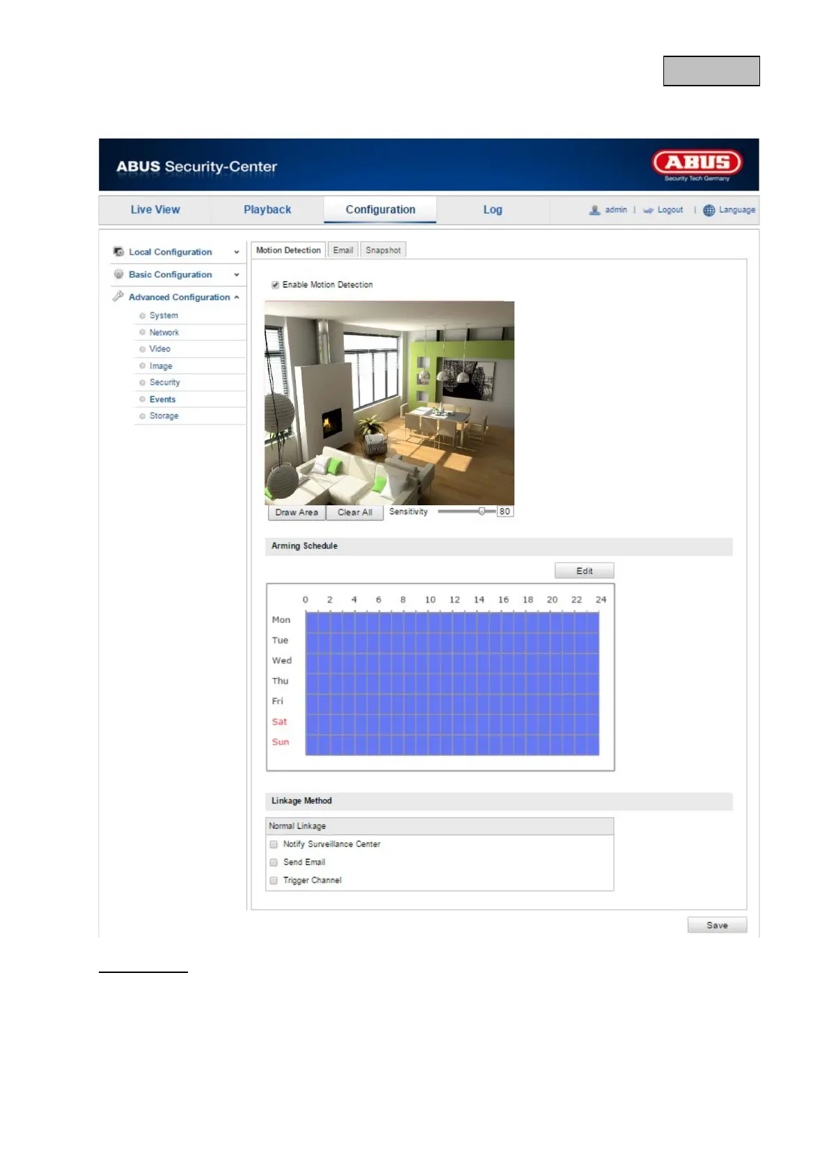 Activate motion detection by clicking the "Enable Motion Detection" checkbox.
