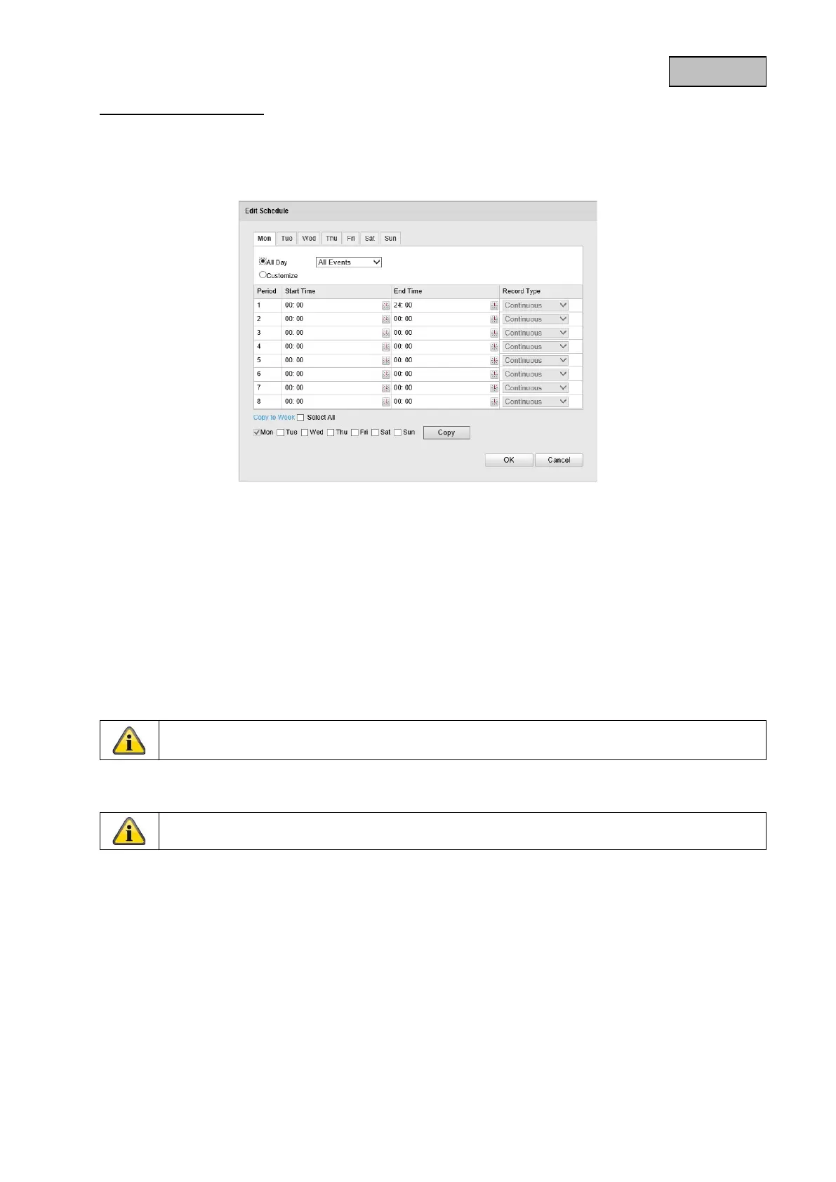 To apply the settings for all days of the week, click the "Select All" checkbox. To copy the settings to