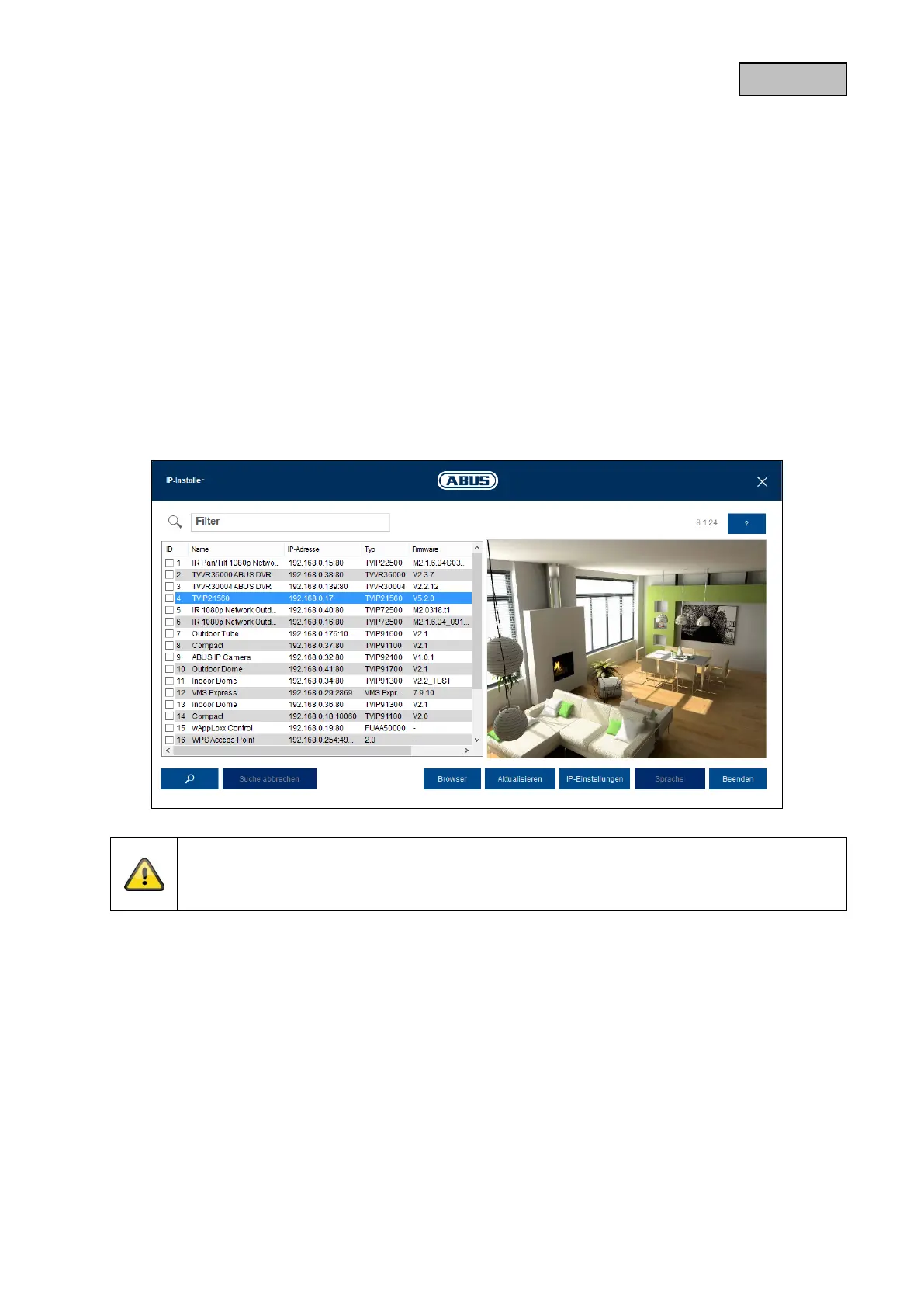 Une fois que l'assistant a démarré, il détecte toutes les caméras réseau ABUS et tous les serveurs