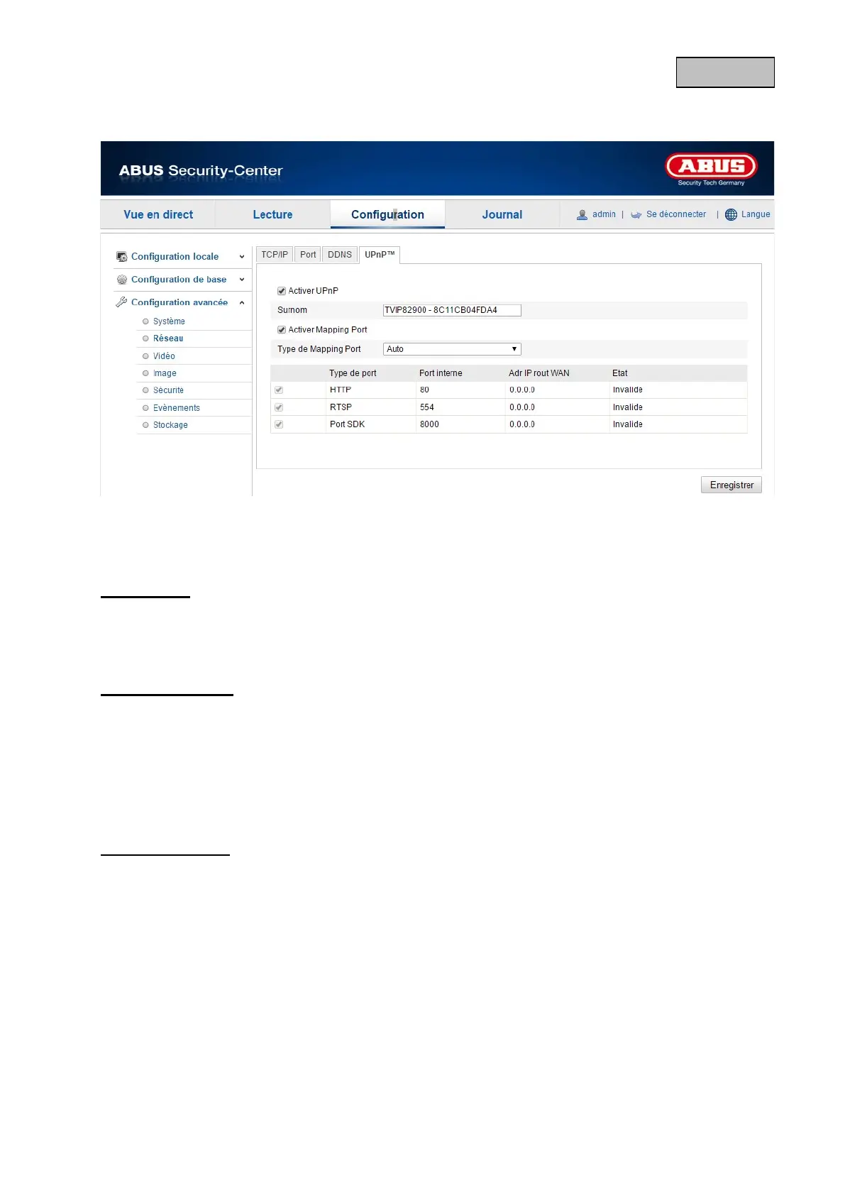 L'Universal Plug and Play (UPnP) pour la redirection de port est activé dans ce menu. Si votre routeur