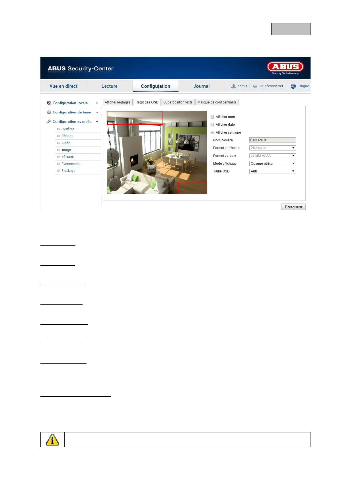 Cochez cette case si vous souhaitez afficher le nom de la caméra.