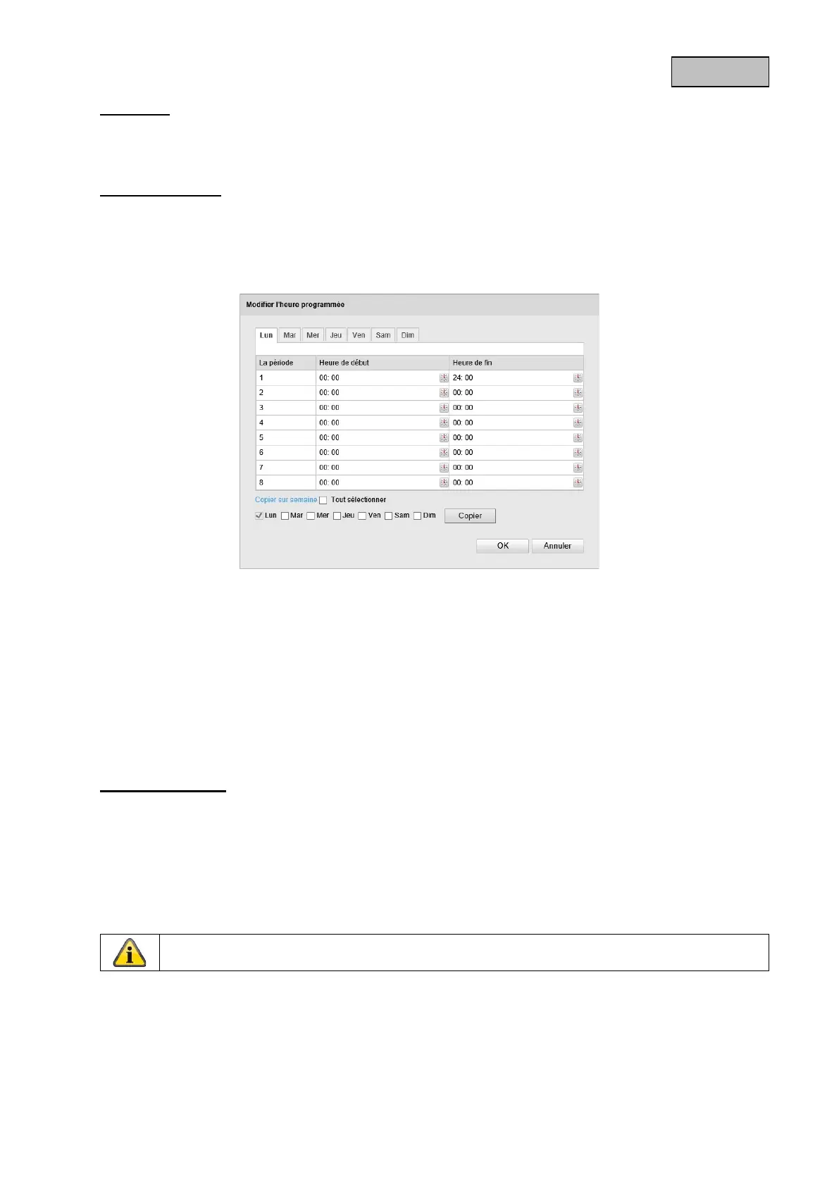 à quelles heures l'enregistrement commandé par détection de mouvement doit avoir lieu.