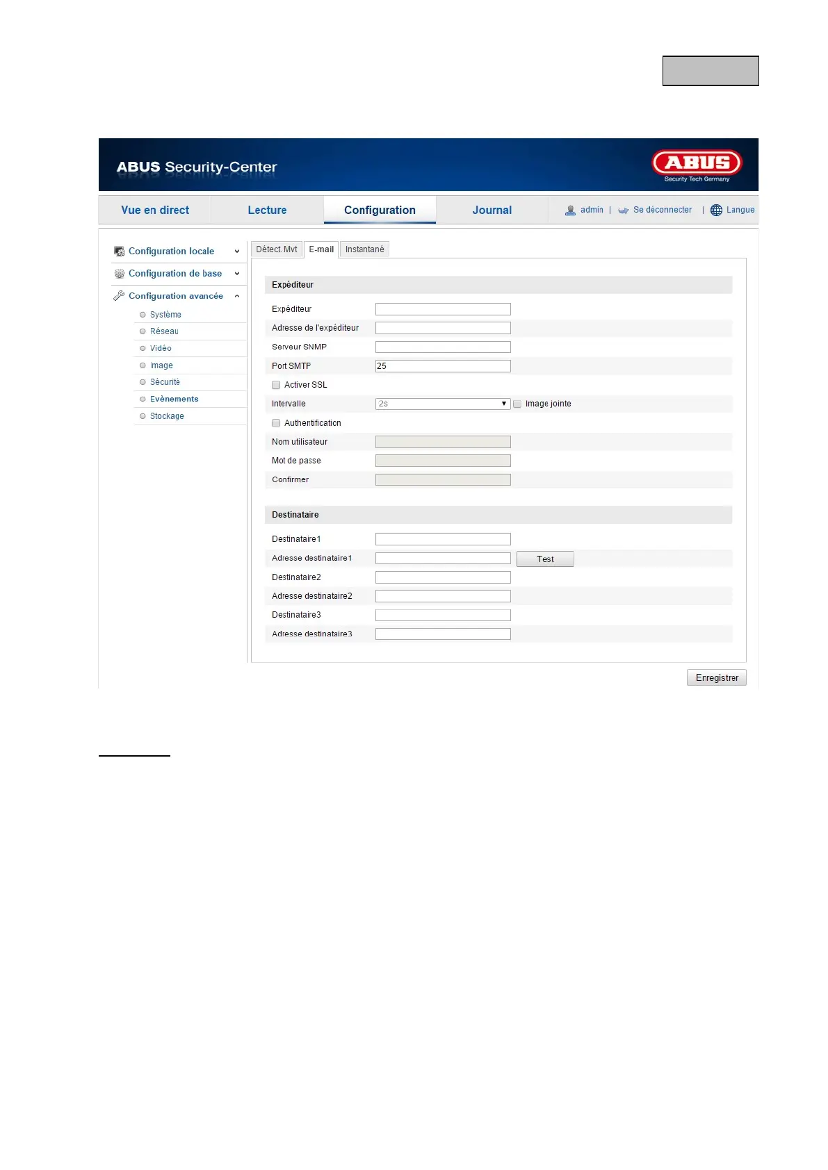 Vous avez ici la possibilité de procéder aux réglages pour l'envoi d'e-mails.