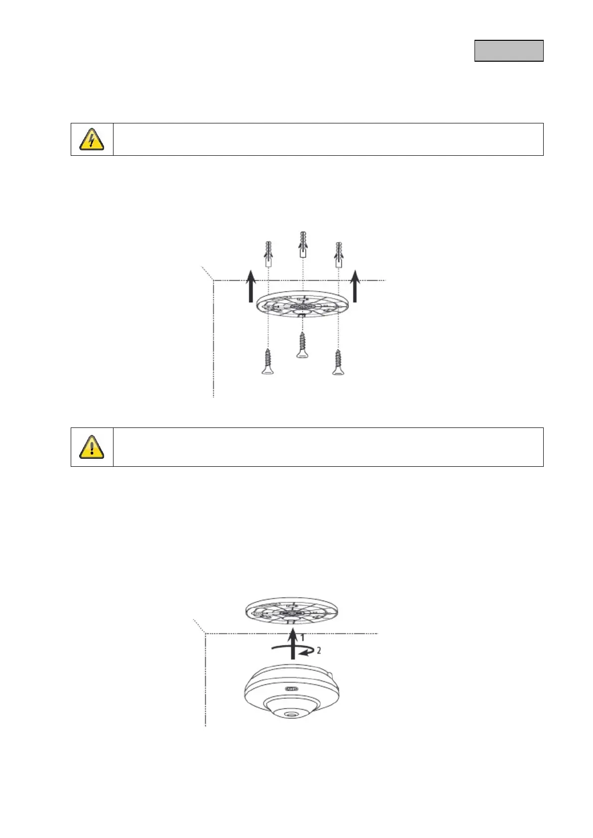 Plaats nu de camera op de plafondsteun. De pijlen op de camera en de plafondsteun moeten