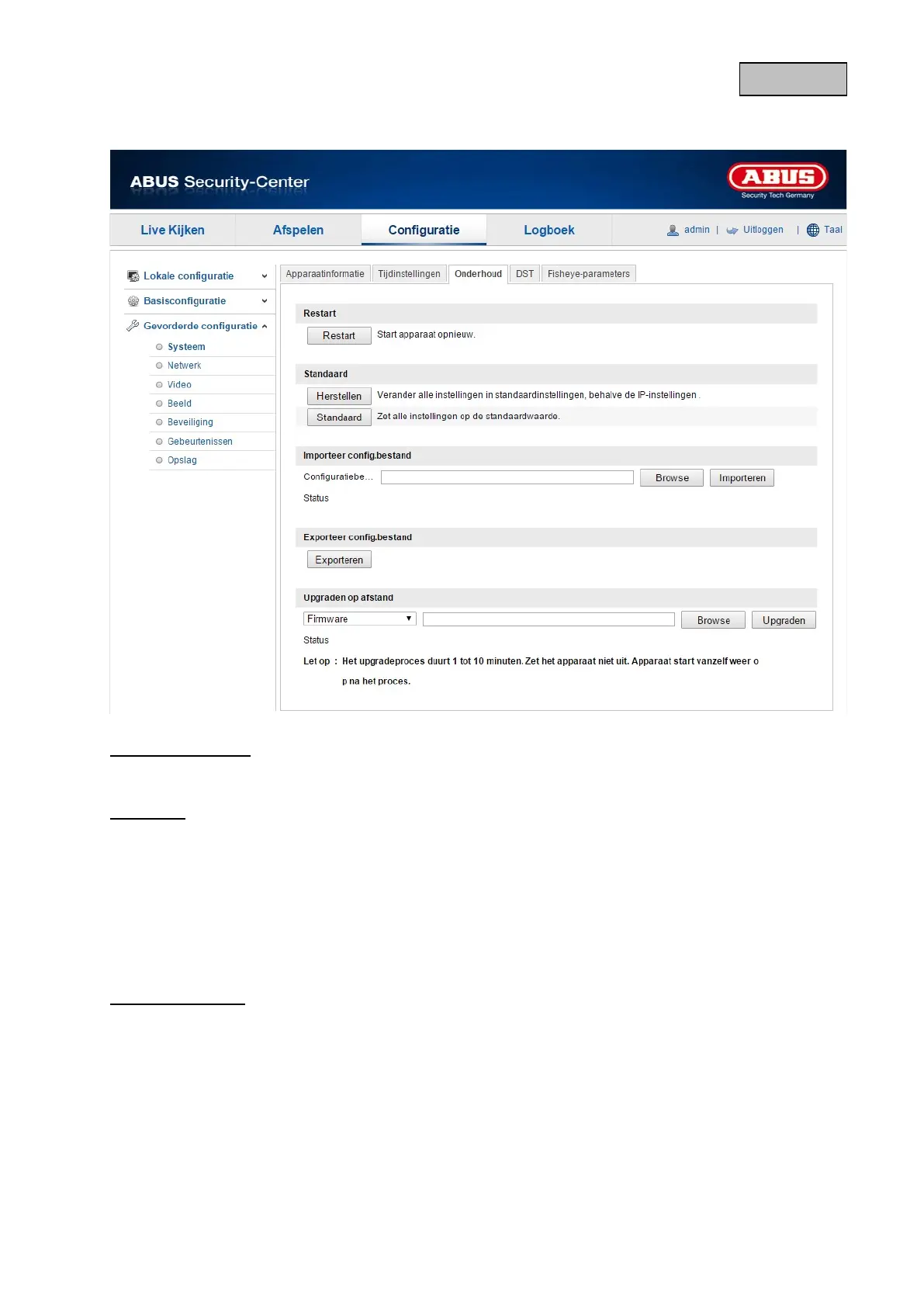 Klik op “Herstellen” om alle parameters behalve de IP-parameters op de standaardinstellingen terug te