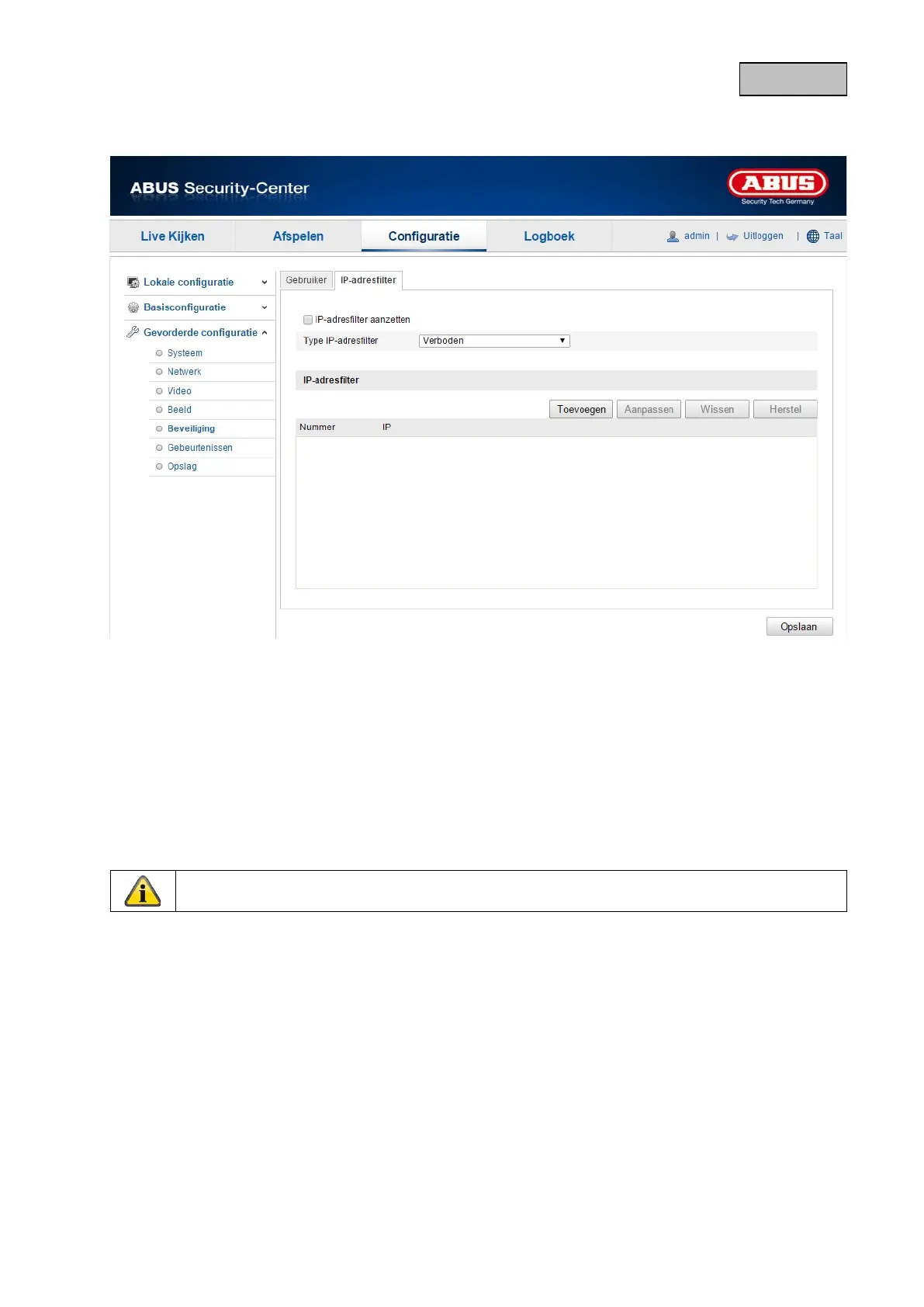 IP-adresfilter activeren